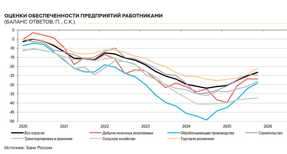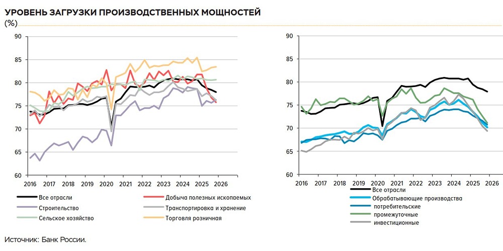 Обзор Индекса бизнес-климата В этом расширенном обзоре содержится много интересной дополнительной статистики: ✅ Малый бизнес традиционно испытывает наибольшие трудности. Крупный бизнес чувствует себя лучше. Это типичная ситуация для нашей экономики. ✅ Графики по вкладу различных отраслей в динамику ИБК показывают, что в декабре хуже всего пришлось сфере услуг (-0,86) и торговле (-0,26). Лучше других выглядела добыча полезных ископаемых (+0,39). ✅ Основное снижение ИБК в 2025 году произошло из-за обрабатывающих производств (-0,89), которые были лидерами по росту в прошлом году, а также из-за торговли (-0,83) и услуг (-0,48). Единственной отраслью, показавшей заметный рост в 2025 году, стало строительство (+0,25). ✅ ЦБ попытался избежать обвинений в торможении экономики из-за высокой ключевой ставки. Опрос о сложностях и ограничениях показывает, что на первых местах стоят рост издержек и слабый спрос. Дефицит кадров отступил на третье место. Проблемы с финансированием находятся только на четвертом месте. Проблемы с логистикой исчезли совсем. Дефицит мощностей и капитальных инвестиций не ощущается. ✅ Инвестиционная активность находится на минимальном уровне с 2022 года. Ожидания по инвестициям снова ниже текущей активности. Зачем инвестировать, если нет повышенного спроса? Это самые тревожные данные в отчете, так как они наносят удар по экономическому росту на годы вперед. Надеемся, что Дмитрий Рэмович и его коллеги осознают важность этой проблемы. ✅ ЦБ снова пытается уйти от ответственности за ключевую ставку. Уровень ставок находится только на четвертом месте среди факторов, ограничивающих инвестиции. На первых местах — недостаток собственных средств, неопределенность в экономике и недостаточный спрос. Кажется, что два из трех факторов не связаны с денежно-кредитной политикой, если не вдуматься. ✅ Рекордный уровень загрузки производственных мощностей утрачен. Произошел откат к уровням 2021-2022 годов. ✅ Проблема обеспеченности предприятий работниками утратила свою остроту. Без спроса и загрузки мощностей работники не нужны. С другой стороны, гонка зарплат, как дополнительный фактор инфляции, прекратилась. Экономика сильно охладилась. Все разговоры о том, что она входит в траекторию сбалансированного роста, становятся демагогией. Экономика выходит из любой траектории роста. Распоряжение о придании экономике импульса к росту было выдано своевременно, если не поздно. Теперь посмотрим, будет ли оно выполнено или саботировано. Не является индивидуальной инвестиционной рекомендацией Пост взят с международного сервиса для инвесторов и трейдеров [M O N D I A R A](https://i.mondiara.com/) 👉 вот ссылка на канал: https://i.mondiara.com/i/c/russia_economy Скачать приложение в [App Store](https://apps.apple.com/ru/app/m-o-n-d-i-a-r-a/id6475953453) Скачать приложение в [Google Play](https://play.google.com/store/apps/details?id=com.mondiara.app) Валюта расчёта - Ваши добрые мысли! Спасибо, что с нами! [M O N D I A R A](https://i.mondiara.com/) — ключевой инструмент для исследований, торговли, инвестирования и стратегического планирования на российском фондовом рынке Источник: Корпоративные облигации