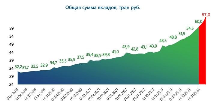 Росстат сообщает, что россияне в 2025 году направили на сбережения рекордные ₽18,46 трлн, что составило 14,1% от их доходов (пресловутая норма сбережений). Это максимальный показатель с 2013 года (надеюсь, не только я помню события того года). В 2024 году этот показатель составлял 9,7%. Высокие ставки по депозитам сделали свое дело. Средняя доходность по вкладам в прошлом году составила 15,17% годовых при инфляции в 5,6%. Люди отреагировали на стимулы буквально по учебнику экономики. главный экономист «Эксперт РА» Антон Табах. Сберегательный бум распределился неравномерно. По данным из опросов, в июле 2025 года 40% граждан заявили об отсутствии накоплений, а у 25% запасов хватило бы лишь на 12 месяцев без зарплаты. Тем не менее, совокупный объем вкладов населения на начало 2026 года достиг исторического максимума — 67 трлн рублей. По другим данным, от Агентства по страхованию вкладов (АСВ): вклады населения выросли на 16,3% — до 65,2 триллиона рублей, вклады индивидуальных предпринимателей — на 12,5% — до 2,85 триллиона рублей, средства на счетах эскроу — на 16,7% — до 7,17 триллиона рублей. В «Мониторинге застрахованных вкладов за 2025 год» сообщается, что общий объем подлежащих страхованию средств во вкладах на 1 января 2026 года составил 85,8 триллиона рублей, увеличившись с начала года на 14,7%. Быстрее всего росли вклады физических лиц в диапазоне от 3 до 10 млн рублей — на 32,6% по сумме и на 32,3% по количеству вкладчиков, а также физлиц в диапазоне от 1,4 до 3 млн рублей — на 23,8% по сумме и на 22,2% по количеству вкладчиков. Средний размер вклада физического лица на 1 января 2026 года составил 419 тысяч рублей. Вроде бы и хорошие новости, граждане проявляют признаки финансово грамотного поведения, меньше тратят, больше сберегают, что позволяет в столь непростое время держать инфляцию более-менее в узде. Но что-то в глубине души заставляет меня сомневаться в правильности выбранной гражданами модели поведения в данный момент времени. И хочется ошибаться в своих сомнениях, но как есть. Время покажет. [mondiara.com](https://mondiara.com) 👆 Больше новостей и анализа [Скачать](https://apps.apple.com/ru/app/m-o-n-d-i-a-r-a/id6475953453) приложение в App Store [Скачать](https://play.google.com/store/apps/details?id=com.mondiara.app) приложение в Google Play Пост взят с международного сервиса для инвесторов и трейдеров [M O N D I A R A](https://i.mondiara.com/) Источник: Русский инвестор