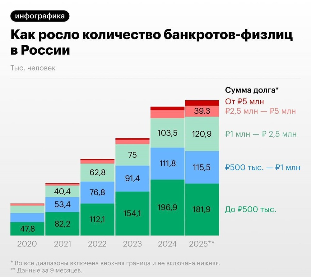❗️У значительной части граждан, объявленных банкротами, размер задолженности перед кредиторами составляет менее 500 тысяч рублей Пост взят с международного сервиса для инвесторов и трейдеров [M O N D I A R A](https://mondiara.com) [Скачать](https://apps.apple.com/ru/app/m-o-n-d-i-a-r-a/id6475953453) приложение в App Store [Скачать](https://play.google.com/store/apps/details?id=com.mondiara.app) приложение в Google Play