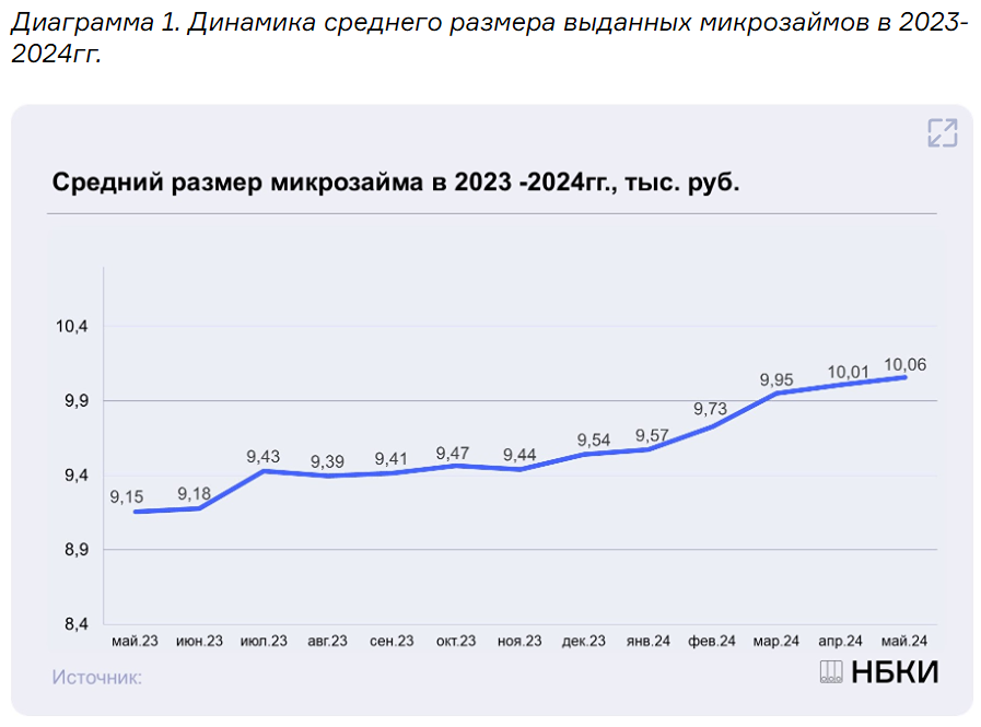 В мае средний размер микрозайма составил 10,06 тыс. рублей.