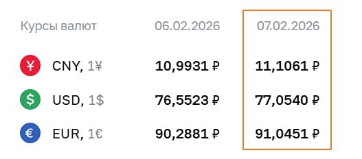 Курсы валют ЦБ на 07.02.2026