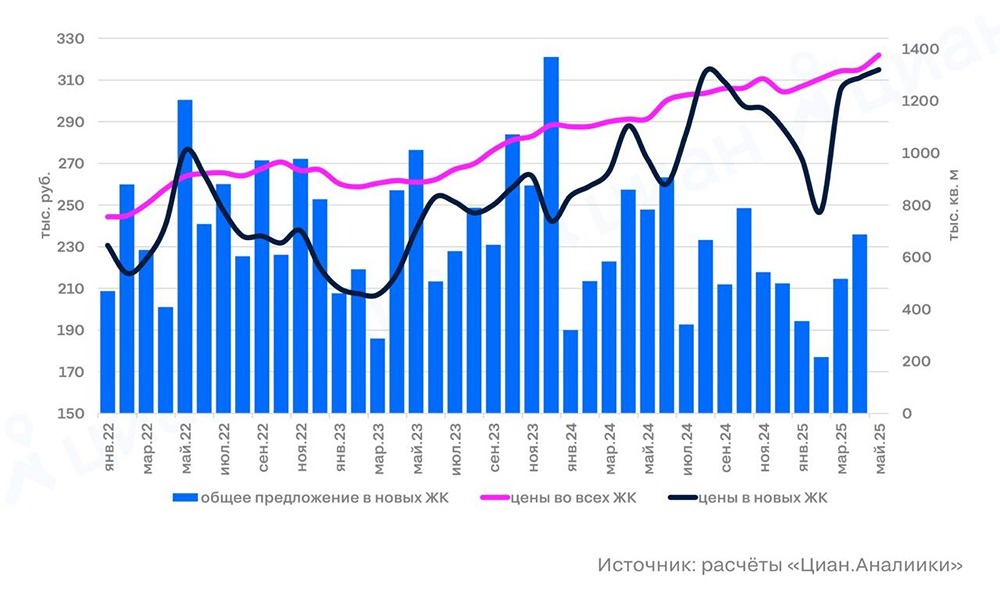 Новостройки в Подмосковье поднимают цены на рынке недвижимости, — отмечает ЦИАН. В конце 2010-х годов стоимость квадратного метра на этапе строительства была на 20–25% ниже средней по рынку. В 2022–2024 годах разница составляла уже 10%, а в 2025 году она сократилась до 3%. Этот рост нельзя объяснить рыночными факторами — он связан исключительно с программой льготной ипотеки.