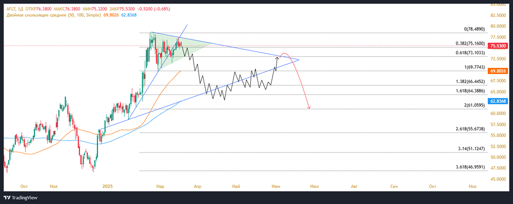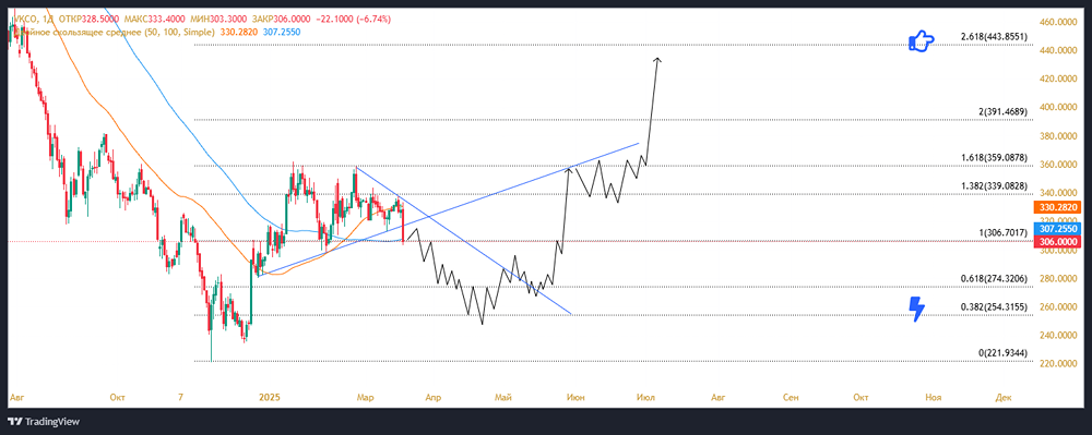 Мнение: БКС Экспресс Ожидается, что стоимость ценных бумаг НЛМК будет оставаться в пределах узкого диапазона в течение всей недели. Краткосрочная картина • Бумаги НЛМК в пятницу не смогли развить отскок четверга и завершили день снижением. В понедельник котировки еще немного откатились вниз, а объем торгов снизился. В целом, уже неделю акции курсируют в диапазоне между максимумами сентября 2024 г. и середины февраля текущего года. • Сегодня на утренней сессии бумаги держатся вблизи 159 руб. При развитии негативной динамики ближайшей поддержкой станет 157,5 — это пиковые значения сентября и нижняя граница, сформировавшегося боковика. В случае пробоя в фокусе внимания окажется ключевая поддержка — 200-дневная EMA, которая сейчас проходит на 153 руб. Пробой этой поддержки обозначит новые ориентиры падения — к 147,1 руб., первому уровню коррекции по Фибоначчи. • При отскоке целью станет возвращение сначала выше 164 руб., далее — к полугодовым максимумам. Здесь же, на 168,1 руб., находится второй уровень коррекции по Фибоначчи к волне снижения от максимумов 2024 г. Закрепление выше этой отметки откроет дорогу к 175 руб. Внешний фон Индекс S&P 500 завершил понедельник в минусе на 2,53%, сегодня с утра фьючерс прибавляет 0,3%. Индексы АТР торгуются с отрицательной динамикой: японский Nikkei падает на 0,9%, гонконгский Hang Seng и китайский Shanghai Composite теряют по 0,8% и 0,5% соответственно. Нефть Brent с утра просела до $69,2 за баррель. Уровни сопротивления: 164 / 168,1 / 175 Уровни поддержки: 157,5 / 153 / 147,1 Долгосрочная картина • С середины октября 2022 г. бумаги НЛМК находились в растущем тренде. Дивидендный гэп вернул котировки с прошлогодних максимумов, пробил восходящий канал. Под давлением негативных общерыночных настроений акции упали в район минимумов с декабря 2023 г., затем обновили и годовые минимумы. Остановка в цикле ужесточения денежно-кредитной политики ЦБ и надежды на улучшение геополитической ситуации вернули котировки в область нашего фундаментального таргета. • У нас «Негативный» взгляд на акции НЛМК с целевой ценой на год — 160 руб. Считаем, что возврат к дивидендам заметно улучшил бы оценку компании. НЛМК в последний раз платил дивиденды за 2023 г. и не указал, насколько такая практика будет регулярной. По нашим оценкам, металлург за 2024 г. может выплатить около 21 руб. на акцию при 100%-ном распределении свободного денежного потока. Среди возможных рисков — введение санкций и рост капитальных затрат. Источник: bcs-express.ru [Не является индивидуальной инвестиционной рекомендацией] В этом сообщении представлено мнение экспертов инвестиционной компании или банка. Оно предоставляется исключительно для ознакомления и не является рекомендацией для покупки или продажи ценных бумаг, а также для принятия каких-либо коммерческих или других решений. mondiara.com не несёт ответственности за содержание этого сообщения и последствия его использования.