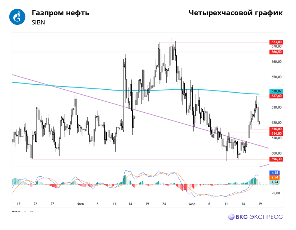 Мнение: БКС Экспресс Ближайшие цели определены Краткосрочная картина • Во вторник бумаги немного снизились в цене в условиях умеренной торговой активности. Большая часть российских акций закрылась в красной зоне. Индекс МосБиржи за основную сессию вырос на 0,38%, а индекс, учитывающий дополнительную сессию, потерял 1,1% по отношению к закрытию вечерки понедельника. • Вчера со старта торгов и практически до конца основной сессии акции Газпром нефти росли в цене неплохими темпами, в моменте прибавляя более 2% с последнего закрытия. Однако на вечерней сессии бумаги пошли в откат. Весь предыдущий прирост был потерян — закрылись на внутридневных минимумах. • Разворот состоялся от 200-дневной скользящей. Образовалась свеча с длинной тенью сверху, похожая на медвежий пинбар. Нисходящий импульс вчера был довольно мощным, поэтому сегодня на старте торгов по инерции также можем продолжать снижение. • Ближайшую поддержку котировки могут встретить в диапазоне на 614–616 руб. Если задержаться там не удастся, то вероятен спуск ниже 600 руб., к 596,3 руб. • Индикаторы показывают умеренно оптимистичную картину. RSI на дневном графике недалеко от 50. Диаграмма MACD пока в отрицательной зоне, но расхождение между скользящими сокращается, на горизонте нескольких дней может образоваться бычий кроссовер — более быстрая скользящая пересечет медленную, что станет сигналом к росту. • Индекс за вчера показал схожую динамику. Сперва рос, затем, достигнув двухнедельной вершины, развернулся вниз. Закрытие на минимумах. Однако индикаторы говорят о чуть большей слабости — RSI в нисходящем тренде, как и обе скользящие на MACD, правда, разрыв между ними понемногу сокращается. Внешний фон Во вторник индекс S&P 500 снизился на 1,07%, фьючерс с утра растет на 0,1%. Индексы АТР растут. Фьючерс на Brent на Мосбирже во вторник вырос на 0,84%, на мировых площадках нефть с утра в минусе на 0,3% — $69,9. Уровни сопротивления: 637,6 / 666,5 / 696 Уровни поддержки: 616 / 596,3 / 577 Долгосрочная картина • До недавнего времени среднесрочная динамика бумаг задавалась скорректированной нисходящей трендовой от декабря 2023 г. Опора на снижении была найдена в районе 515 руб. • В конце ноября наметился разворот среднесрочного тренда. Акции со второй попытки преодолели нисходящую трендовую, но в конце февраля начался локальный откат, в рамках которого бумаги вновь вернулись к трендовой и протестировали ее сверху. Отскочили. • В моменте акции компании уходили выше 200-дневной средней, но надолго там не задержались. Ближайшая среднесрочная цель — закрытие дивидендного гэпа на 696 руб. • На недельном таймфрейме умеренно позитивная техническая картина. Преобладает среднесрочный восходящий тренд. В конце февраля начался локальный откат. На прошлой неделе видели замедление нисходящей динамики, а уже на этой неделе появились первые попытки вернуться к росту. Источник: bcs-express.ru Автор: Решетников Олег [Не является индивидуальной инвестиционной рекомендацией] В этом сообщении представлено мнение экспертов инвестиционной компании или банка. Оно предоставляется исключительно для ознакомления и не является рекомендацией для покупки или продажи ценных бумаг, а также для принятия каких-либо коммерческих или других решений. mondiara.com не несёт ответственности за содержание этого сообщения и последствия его использования.