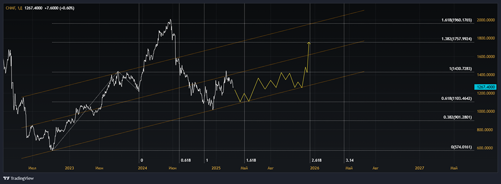 В растущем канале ТФ: 1Д [день] Для расчёта будущей стоимости активов применяется алгоритмический подход, который учитывает поведение цены, основываясь на числовой последовательности Фибоначчи. Не является индивидуальной инвестиционной рекомендацией или предложением о покупке или продаже указанной ценной бумаги.