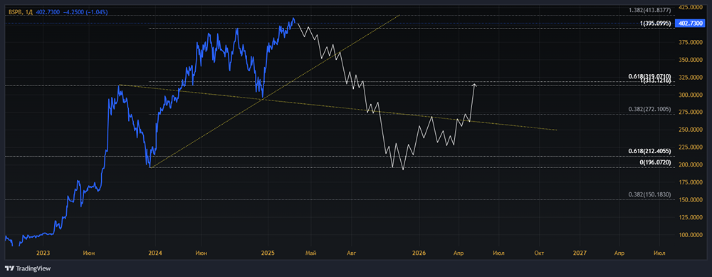 Акции БАНК САНКТ-ПЕТЕРБУРГ ждет коррекция с падением до 200 рублей? Рассмотрим график. Технический обзор