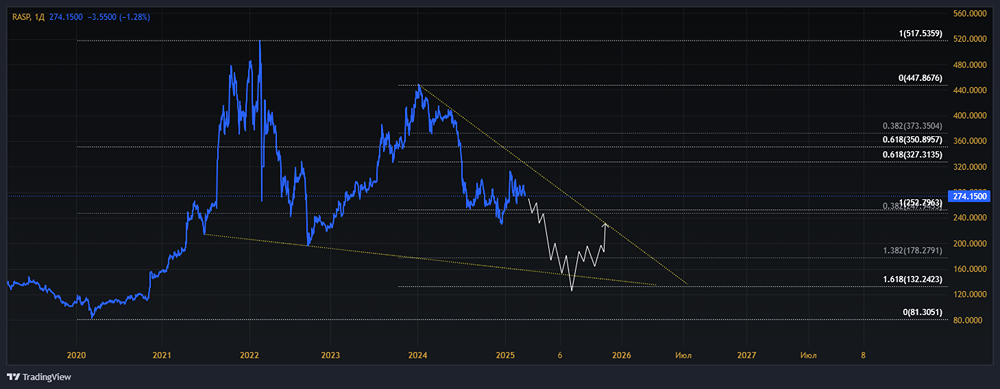 Акции РАСПАДСКАЯ будут падать? Рассмотрим график. Сделаем вывод