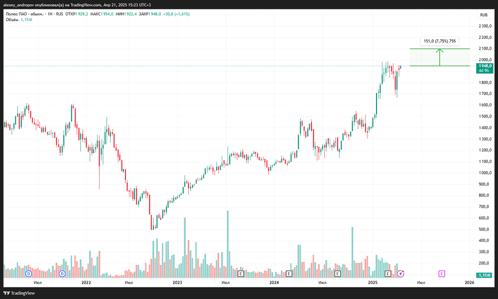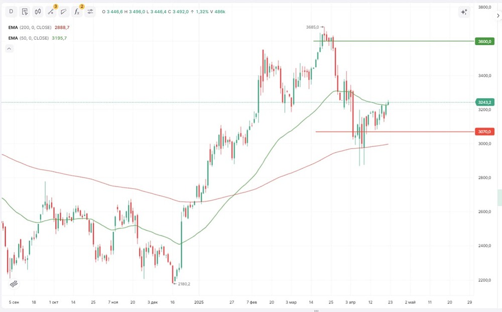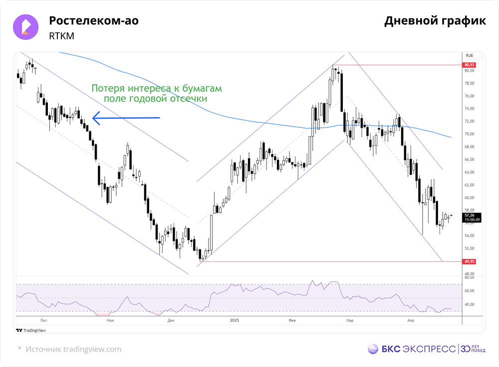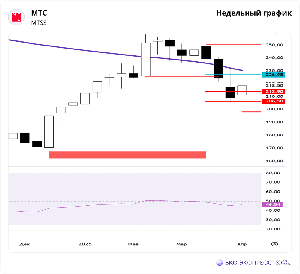 Мнение: БКС Экспресс Будет ли рост на дивидендном периоде Акции МТС на прошлой торговой сессии выросли на 6,9%. Цена на закрытии составила 216,05 руб. Бумаги торговались лучше рынка. Объем торгов достиг 2,53 млрд руб. Краткосрочная картина • В конце марта акции выполнили цели падения 228,25–230,35, после — 227,6 и 225,5. Затем появилась реакция покупателей, но дальше отскока рост не пошел. • Продавцы перехватили инициативу и сформировали новый импульс падения на дневном графике с максимумом 232,7. • Ждем окончание отскока и еще одну попытку падения для теста зоны поддержки 198–200,5. • Кривая RSI дневного графика на отметке 43 п. На 4-часовом таймфрейме цена между 50- и 200-дневной скользящей средней. В первую очередь следим за структурой графика и уровнями 232,7 и 198. Внешний фон Индекс S&P 500 в среду вырос на 9,38%, с утра в минусе на 0,8%. Индексы АТР торгуются в зеленой зоне. Нефть Brent в среду выросла на 4,23%, с утра в минусе на 1,4%. Уровни сопротивления: 232,7 / 240 / 258,2 Уровни поддержки: 200,5 / 198 / 162 Долгосрочная картина Цели • Первый импульс роста на недельном графике сформировался. Движение с середины февраля переросло из отката в структуру падения. Цели 226,95 и 206,5–213,9 этой структуры выполнены. • Ждем формирования новой структуры для оценки следующего движения. • Локальные цели движения смотрим в краткосрочной картине. Источник: bcs-express.ru Автор: Мамонтов Андрей Не является индивидуальной инвестиционной рекомендацией. В этом сообщении представлено мнение экспертов инвестиционной компании или банка. Оно предоставляется исключительно для ознакомления и не является рекомендацией для покупки или продажи ценных бумаг, а также для принятия каких-либо коммерческих или других решений. mondiara.com не несёт ответственности за содержание этого сообщения и последствия его использования.
