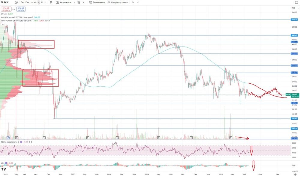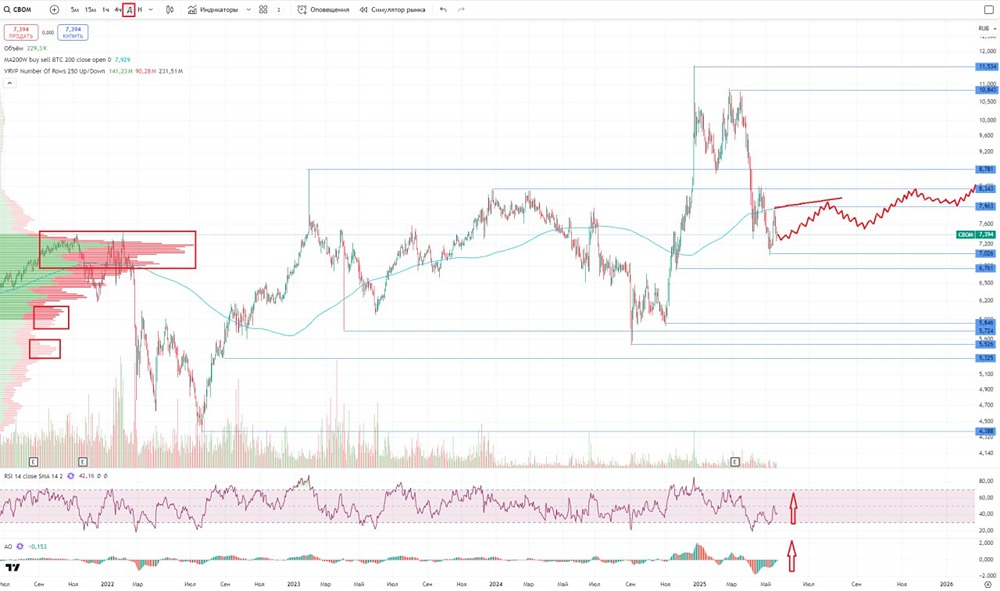 Мнение: БКС Экспресс Низкая активность продавцов: Роснефть не смогла пробить минимум 467,7 руб. На прошлой торговой сессии акции «Роснефти» подешевели на 0,32%. На закрытии их стоимость составила 469,9 рублей. Бумаги торговались хуже рынка. Объём торгов достиг 1,5 миллиарда рублей. Краткосрочная динамика В четверг продавцы не смогли преодолеть минимум 467,7. Их реакция указывает на то, что для продолжения снижения не хватает сил. Техническая картина на часовом графике может измениться в пользу покупателей при пробое сопротивления на уровне 474,75. Если рост возобновится и сопротивление на уровне 484 будет пробито, то следующие цели — 495 и 508,4. Если цена пробьёт минимум 467,7, то следующие цели — 463,35, 459,3 и 457. Этот сценарий всё ещё возможен. На дневном графике RSI находится на отметке 44 пункта. На 4-часовом графике акции находятся между 50- и 200-дневными скользящими средними. В первую очередь нужно следить за уровнями сопротивления и поддержки: 484 и 467,7. Внешний фон Индекс S&P 500 в четверг вырос на 2,03%, а утром прибавил ещё 0,4%. Азиатские фондовые индексы торгуются в зелёной зоне. Цена нефти Brent в четверг упала на 0,71%, но утром выросла на 0,5%. Уровни сопротивления: 474,75 / 484 / 486,3 Уровни поддержки: 467,7 / 416,35 / 400 Долгосрочная перспектива Недельный импульс привёл к ускорению падения с целями 416–425,8 (были достигнуты) и 400,2. Ждём завершения отскока, после чего можно ожидать попытки тестирования минимума 416,15 в ближайшие недели. Текущую динамику рассматриваем в краткосрочной перспективе. На месячном графике не достигнута безопасная цель роста в 631 рубль. В долгосрочной перспективе нужно следить за закрытием недельной свечи в конце торгов пятницы. Источник: bcs-express.ru Автор: Мамонтов Андрей Не является индивидуальной инвестиционной рекомендацией. В этом сообщении представлено мнение экспертов инвестиционной компании или банка. Оно предоставляется исключительно для ознакомления и не является рекомендацией для покупки или продажи ценных бумаг, а также для принятия каких-либо коммерческих или других решений. mondiara.com не несёт ответственности за содержание этого сообщения и последствия его использования.