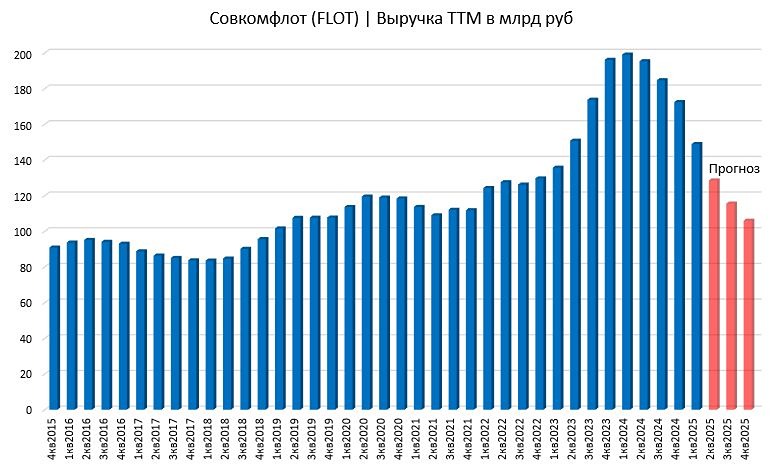 Совкомфлот (FLOT). Вот и приплыли... ▫️Капитализация: 183 млрд / 77₽ за акцию. ▫️Выручка ТТМ: 149 млрд руб. ▫️Скор. чистая прибыль ТТМ: 24,3 млрд руб. ▫️P/B: 0,5. ▫️Скор. P/E ТТМ: 7,4. ▫️Fwd P/E 2025: 12,1. ▫️Fwd дивиденды 2025: 4%. ❗️Эйфория прошла, и цена акций компании вернулась к справедливым значениям (80 руб.), о которых я писал ранее). Выручка в рублях составила всего 26 млрд руб. (-47,5% г/г), что стало худшим кварталом с 2018 года. Тем не менее, благодаря незначительному чистому долгу, убыток на уровне скорректированной чистой прибыли составил лишь 0,1 млрд руб. (корректировка на курсовые разницы и обесценение флота была проведена). 👆 Этот квартал стал первым, когда полностью проявился эффект от усиления санкций: часть судов простаивает, и перевести их на новые маршруты, похоже, не удается. ❌ В отчетном периоде компания обесценила флот на сумму 322,3 млн долларов. Возможно, эти суда придется вывести из периметра группы и включить в теневой флот. В целом, бизнес компании сократился. 📉 Если в первом квартале средний курс доллара был 93,3 руб., то во втором квартале 2025 года он будет еще менее благоприятным для компании. 👆 Учитывая новые реалии, несмотря на незначительный чистый долг, СД решил не выплачивать дивиденды за 2024 год. Это логично, так как два-три таких квартала, и чистый долг вырастет, а при текущих ставках его обслуживание станет невыгодным. Вывод: Можно сколько угодно утверждать, что компании уже адаптировались к санкциям, но пример Совкомфлота показывает, что прибыль некоторых компаний может просто исчезнуть. Если повезет, компания завершит год с прибылью и, возможно, заработает около 15 млрд руб. (fwd P/E 2025 = 12,1 и fwd дивиденд за 2025 год составит около 4%). Пока здесь ничего интересного. Если будет хороший дисконт, можно будет присмотреться, но пока делать нечего. Данный материал носит информационный характер и не является индивидуальной инвестиционной рекомендацией или предложением о покупке или продаже указанной ценной бумаги. Источник: t.me/taurenin