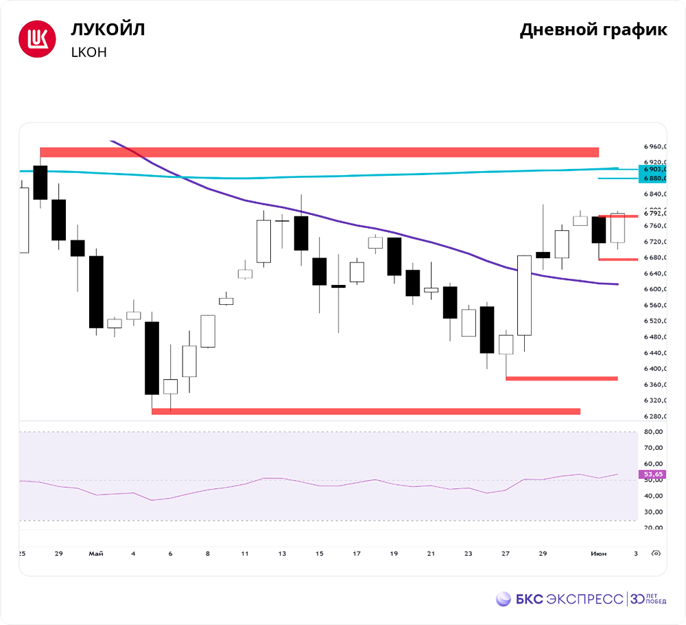 Технический анализ акций ЛУКОЙЛ на июнь 2025: уровни поддержки, сопротивления и прогнозы на ближайшие недели