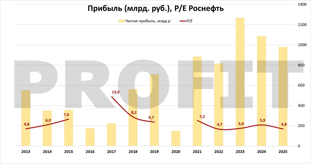 Роснефть заработала всего 8 рублей дивидендов. Выручка компании в первом квартале снизилась на 8,5% по сравнению с прошлым периодом. EBITDA упала на 15%, а маржа вернулась к уровням 2021 года. Это был «хороший» квартал, но во втором квартале ситуация может ухудшиться. Средняя цена барреля нефти в первом квартале составила 5880 рублей. Второй квартал начался с 4560 рублей, что может привести к снижению цены на 25% по итогам квартала. Денежный поток оказался слабым, а свободный денежный поток составил минус 17 миллиардов рублей. ОЦЕНКА И ПЕРСПЕКТИВЫ По итогам 2025 года P/E ожидается на уровне около 4,8 с учётом восстановления во втором полугодии. Если курс рубля не ослабнет, а цены на нефть не вырастут, прибыль упадёт ещё сильнее, и мультипликатор может быть выше. Конъюнктура рынка остаётся неопределённой. ОПЕК увеличивает добычу, что сдерживает рост цен на нефть. Курс рубля остаётся сильным, и снижение ключевой ставки на несколько процентов до конца года вряд ли приведёт к девальвации и оживлению импорта. Эти факторы негативно влияют на экспортную выручку и финансовые результаты компании. Если второе полугодие будет успешным, дивиденд может составить 45-50 рублей за год, что эквивалентно примерно 10%. Второй квартал ожидается слабым, но настоящий спад может начаться позже. Без улучшения внешней конъюнктуры прибыль 2025 года будет значительно ниже, чем в 2024 году. Акции компании уже потеряли 30% с пиковых значений. Оценка выглядит адекватной — 4,8 P/E с учётом роста прибыли во втором полугодии. Интерес к акциям может появиться только при резком росте цен на нефть и девальвации рубля. Ждём отчёт за второй квартал и следим за рыночной ситуацией. Оценивать «Роснефть» имеет смысл с прицелом на 2026 год — при условии восстановления курса доллара и цен на нефть. РЕШЕНИЕ: НЕ ТРОГАЕМ. Источник: https://t.me/+--KXQdGt7k0yNWMy