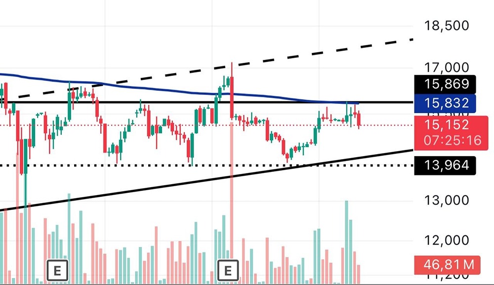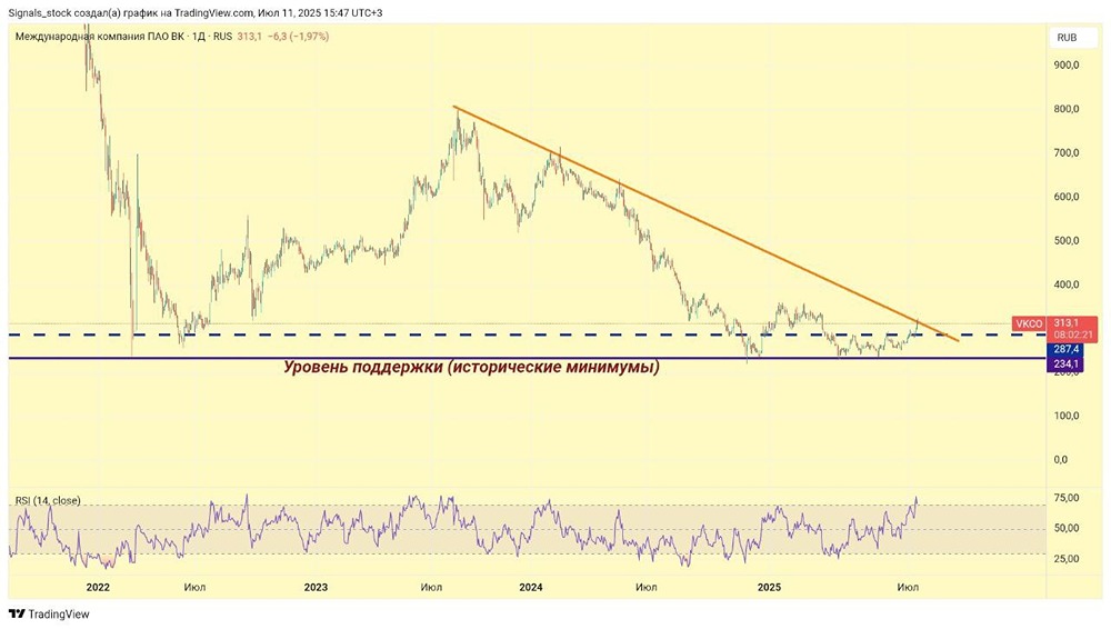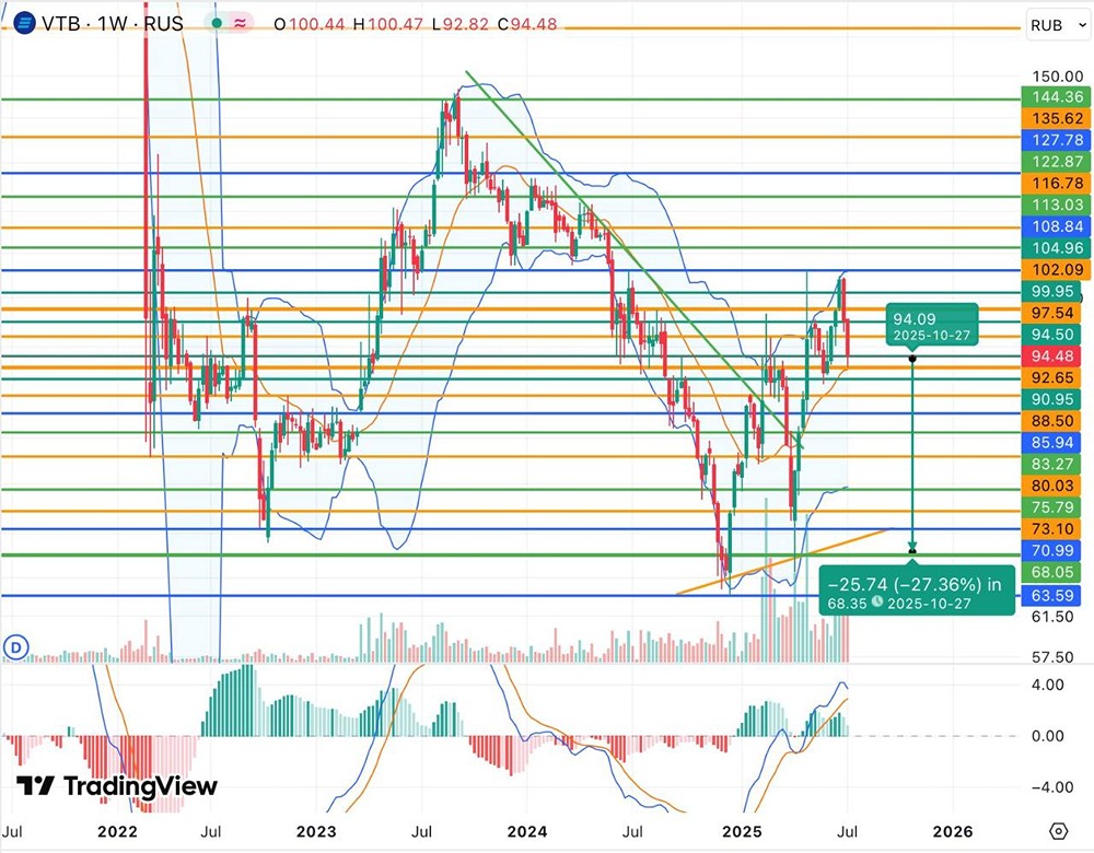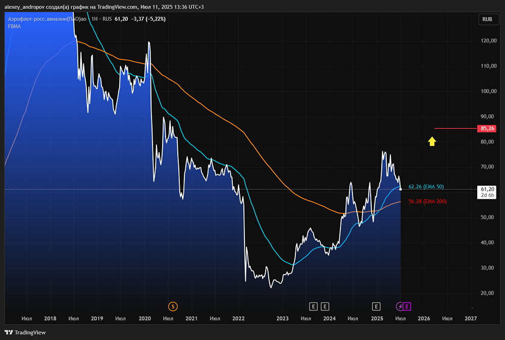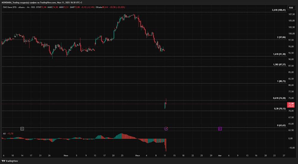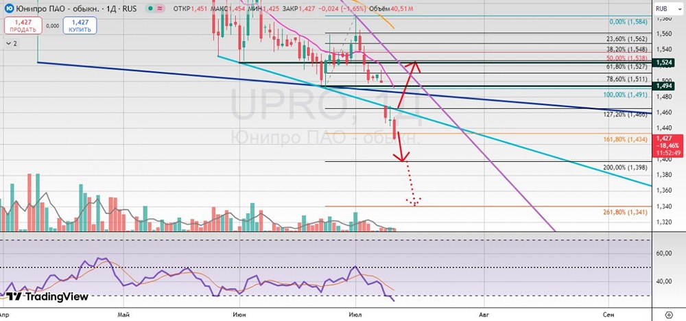 #SNGSP, вероятно, продолжит снижаться и достигнет уровня 47. Если мы правы насчёт разворота рубля, то цена привилегированных акций Сургута станет защитным активом в условиях широкого снижения и девальвации рубля. Это позволит ей откатиться вверх и временно пойти против рынка, продолжив коррекцию в виде треугольника. Данный материал носит информационный характер и не является индивидуальной инвестиционной рекомендацией или предложением о покупке или продаже указанной ценной бумаги.