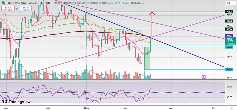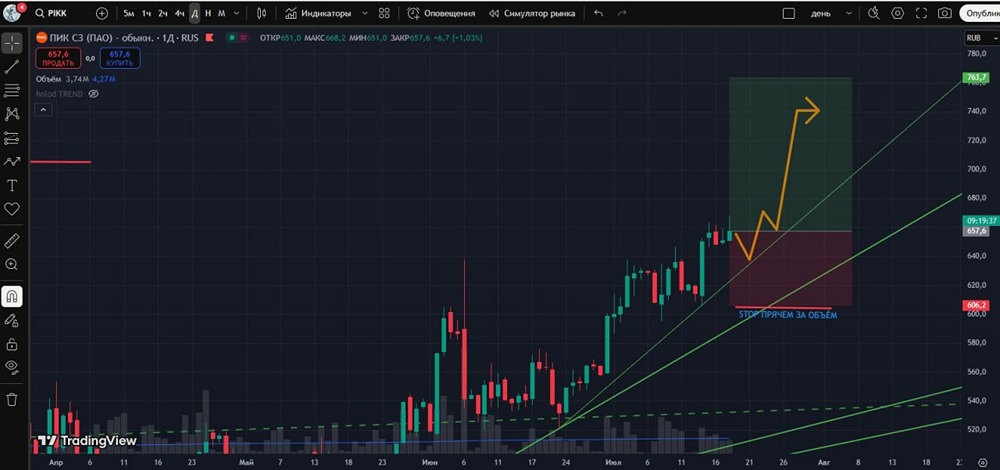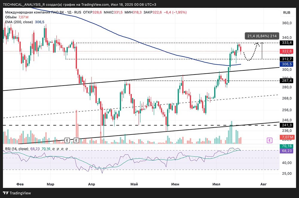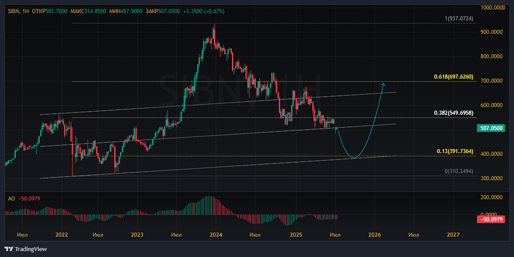 Мнение: БКС Экспресс Снижение акций Сбербанка до 309,7 рублей: краткосрочный и долгосрочный анализ В пятницу стоимость акций Сбербанка снизилась на 0,88%, достигнув отметки 309,7 рублей. Объём торгов составил 6,9 миллиардов рублей. В начале торгов стоимость акций увеличилась на 0,1%. Краткосрочный анализ Акции Сбербанка завершили прошлую неделю снижением после роста в первой половине и коррекции во второй. В начале дня стоимость акций достигла отметки 310,92, увеличившись на 0,4%. Однако затем котировки быстро вернулись к уровню закрытия предыдущего дня, повторяя динамику цен на нефть, которая выросла до 80 долларов за баррель, но затем скорректировалась до 78 долларов. На часовом графике наблюдается пробой июньского восходящего тренда и 200-часовой средней, что может привести к откату до минимумов 10 июня на уровне 307,6. Более существенные уровни поддержки находятся ниже: 303 — это восходящий тренд от минимумов апреля, круглая отметка 300 и 200-дневная средняя около 296. Внешний фон В пятницу индекс S&P 500 снизился на 0,22%. Фьючерс на S&P 500 утром также демонстрирует снижение на 0,1%. Цена нефти марки Brent выросла на 1,4% до 78,1 доллара за баррель. Индексы Азиатско-Тихоокеанского региона показывают разнонаправленную динамику. Уровни сопротивления: 310,9, 312, 314,7, 316,5. Уровни поддержки: 307,6, 303, 300, 296. Долгосрочный анализ Стоимость акций на 20% ниже исторического максимума. В феврале 2022 года, на фоне геополитической ситуации, был пробит многолетний тренд, который начался в 2014 году. Поддержка была найдена на уровне пологого восходящего тренда, который тянется от минимумов 2009 года. Акции уверенно росли до середины 2024 года, после чего начался период коррекции. Снижение котировок удалось остановить в декабре. Ключевым фактором стало решение Центрального банка не повышать ключевую ставку. Среднесрочный тренд сменился на восходящий. Улучшению перспектив способствовало преодоление 200-дневной скользящей средней. Ближайшие среднесрочные цели — закрепление выше долгосрочной нисходящей трендовой и обновление максимумов 2024 года на уровне 330 рублей. Аналитики БКС оценивают перспективы акций как нейтральные, а цель на горизонте года составляет 400 рублей. Источник: bcs-express.ru Автор: Короев Альберт В этом сообщении представлено мнение экспертов инвестиционной компании или банка. Оно предоставляется исключительно для ознакомления и не является рекомендацией для покупки или продажи ценных бумаг, а также для принятия каких-либо коммерческих или других решений. Mondiara.com не несёт ответственности за содержание этого сообщения и последствия его использования.