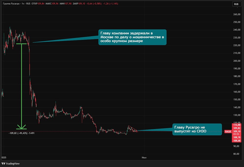 Почему акции Русагро падают? Московский городской суд отклонил апелляционную жалобу на продление срока содержания под стражей основателя агрохолдинга «Русагро» Вадима Мошковича и бывшего гендиректора Максима Басова. Предприниматели останутся в СИЗО до 25 августа. На фоне этой новости акции компании упали более чем на 1,5%. В конце марта 2025 года Мошковича задержали в Москве по подозрению в мошенничестве в особо крупном размере. С тех пор акции «Русагро» продолжают падать, и их стоимость снизилась более чем на 50%. Не стоит переживать из-за этой новости. Такой ажиотаж вокруг неё возник из-за отсутствия других значимых событий. Реакция рынка минимальна, особенно если сравнить с падением акций в марте, когда компанию задержали впервые. Стоит ли инвестировать в акции «Русагро»? Компания сильна сама по себе. Текущие проблемы носят временный и эмоциональный характер. Акции могут вырасти, как только ситуация на рынке изменится или будет принято решение по делу Мошковича. Если его оправдают, это станет мощным стимулом для роста. Данный материал носит информационный характер и не является индивидуальной инвестиционной рекомендацией или предложением о покупке или продаже указанной ценной бумаги. Источник: KondrashovInvest