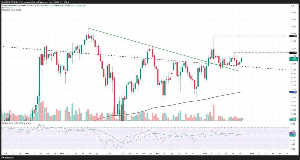 Сбербанк (SBER): Технический анализ на 1-дневном таймфрейме — рост к 316,5 и возможный шорт-сквиз