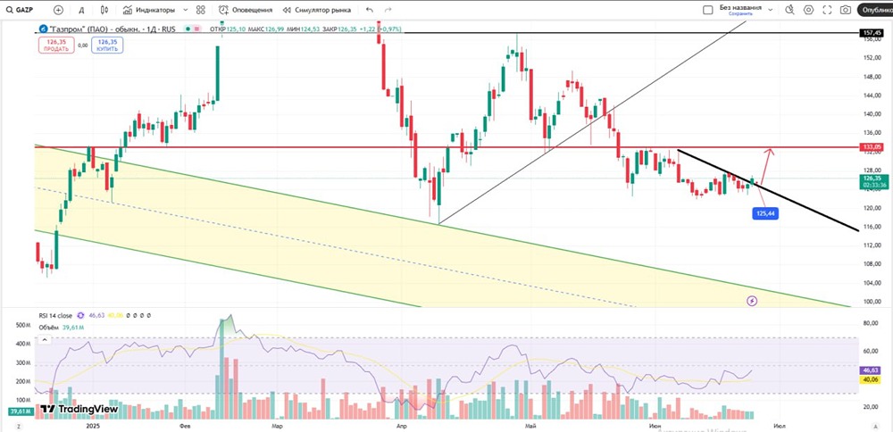 Акции Газпром (GAZP): Технический анализ и торговая стратегия — пробой нисходящего тренда и план роста