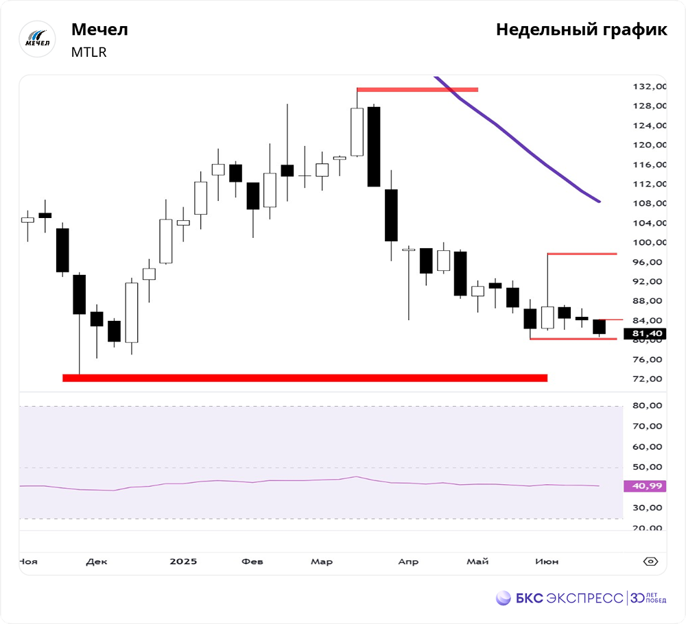 Мнение: БКС Экспресс Что происходит с акциями Мечел: причины падения и перспективы восстановления в июле 2025 На прошлой торговой сессии акции компании Мечел потеряли в цене 0,75%. На закрытии их стоимость составила 81,58 рублей. В ходе торгов бумаги продемонстрировали более слабую динамику, чем рынок в целом. Объём торгов составил 0,64 миллиарда рублей. Краткосрочный прогноз В понедельник продавцы преодолели поддержку на уровне 82,18. Это делает актуальным сценарий снижения в зону 79,4–80,1. Пока отметка 83,39 не пробита, риски падения отсутствуют. Мы ожидаем завершения текущей недели и реакции рынка на диапазон дневного графика 80,75–84,4. В первую очередь мы следим за уровнями сопротивления и поддержки: 84,4 и 80,2. Внешний фон В четверг индекс S&P 500 вырос на 0,78%, а утром в пятницу показывает рост на 0,1%. Индексы Азиатско-Тихоокеанского региона демонстрируют разнонаправленную динамику. Стоимость нефти марки Brent в четверг увеличилась на 0,39%, а утром в пятницу демонстрирует рост на 0,6%. Уровни сопротивления: 84,4 / 86,64 / 98 Уровни поддержки: 80,75 / 80,2 / 71,55 Источник: bcs-express.ru Автор: Мамонтов Андрей Не является индивидуальной инвестиционной рекомендацией. В этом сообщении представлено мнение экспертов инвестиционной компании или банка. Оно предоставляется исключительно для ознакомления и не является рекомендацией для покупки или продажи ценных бумаг, а также для принятия каких-либо коммерческих или других решений. mondiara.com не несёт ответственности за содержание этого сообщения и последствия его использования.