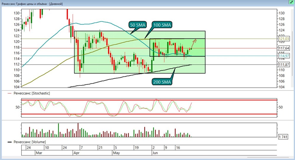 Акции Ренессанс (RENI): Технический анализ — цели и стопы по скользящим средним