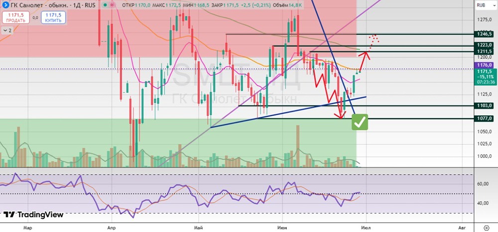 Акции ГК Самолёт (SMLT): Варианты развития — пробитие 50 EMA и потенциал роста до 1246