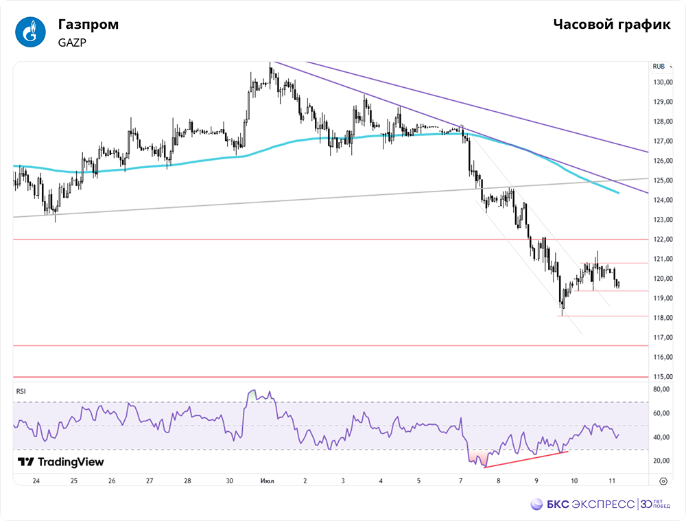 Почему акции Газпрома могут снизиться до 115–116 рублей: технический обзор