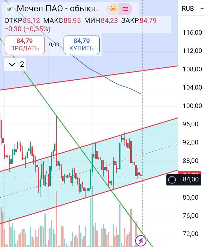 Акции Мечел: торговая стратегия по восходящему каналу и уровню 84 руб. для отскока