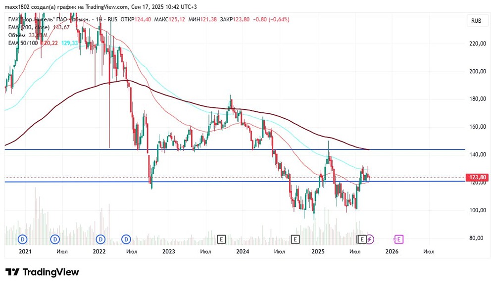 В прошлый раз мы купили его по 122 рублям и неплохо заработали Сегодня рассмотрим, стоит ли покупать его снова. 🔷 Разбор графика 🔹 Дневной таймфрейм. Уровень 122–121 руб. остаётся хорошим ориентиром для покупок. Чуть ниже проходит ЕМА200, под неё можно поставить стоп. Если вы купили бумагу вчера, то: 🔺 Цели: первая — 130 руб. (6,5%), вторая — 143 руб. (15,5%). 🔻 Стоп: уход и закрепление ниже 118,5 руб. — около 3%. ♦️ Риск/прибыль: 1/2 и 1/4. Если вы ещё не купили, ждите обозначенных уровней. Думаю, возможность будет. 🔹 Недельный таймфрейм. Здесь видно, как цена зажата между ЕМА50 и ЕМА100. Выход из этого диапазона укажет направление дальнейшего движения. Нам остаётся только ждать: либо закроем по стопу, либо зафиксируем прибыль. ❗️ Важно: следите за позициями и ставьте стопы. Рынок сейчас «новостной», возможны резкие движения в обе стороны. Будьте осторожны! Данный материал носит информационный характер и не является индивидуальной инвестиционной рекомендацией или предложением о покупке или продаже указанной ценной бумаги. Больше новостей и анализа находятся в нашем мобильном приложение [m o n d i a r a](https://i.mondiara.com/) Скачать в [App Store](https://apps.apple.com/ru/app/m-o-n-d-i-a-r-a/id6475953453) Скачать в [Google Play](https://play.google.com/store/apps/details?id=com.mondiara.app) Источник: Инвестируем Выгодно
