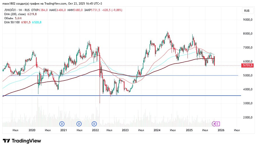 Как санкции и перенос СД влияют на акции Лукойла? Больше всего вопросов поступает о данной компании. Санкции и перенос совета директоров привели к значительному падению акций, но это может быть только началом. Анализ графика На недельном таймфрейме, если отбросить новостной шум вокруг компании и взглянуть на ситуацию с точки зрения технического анализа, можно заметить, что цена с мая 2024 года постепенно снижается к зоне 5000-3500. Бывают отскоки, иногда даже успешные, но максимум, достигнутый в мае 2024 года, пока не повторился. В июле были обновлены годовые минимумы, и есть вероятность, что они могут повториться в ближайшее время. Однако уровень 5000 может стать сильной поддержкой, от которой возможен хороший отскок. Я планирую заработать на этом уровне, но нужно дождаться его достижения. Будьте осторожны, рынок сильно зависит от новостей. Не рискуйте слишком сильно, ставьте стоп-лоссы и контролируйте свои позиции. Не является индивидуальной инвестиционной рекомендацией Пост взят с соцсети [M O N D I A R A](https://i.mondiara.com/) 👉 вот ссылка на канал: https://i.mondiara.com/i/c/lukoil_analytics Скачать в [App Store](https://apps.apple.com/ru/app/m-o-n-d-i-a-r-a/id6475953453) Скачать в [Google Play](https://play.google.com/store/apps/details?id=com.mondiara.app) Валюта расчёта - Ваши добрые мысли! Спасибо, что с нами! Источник: Инвестируем Выгодно