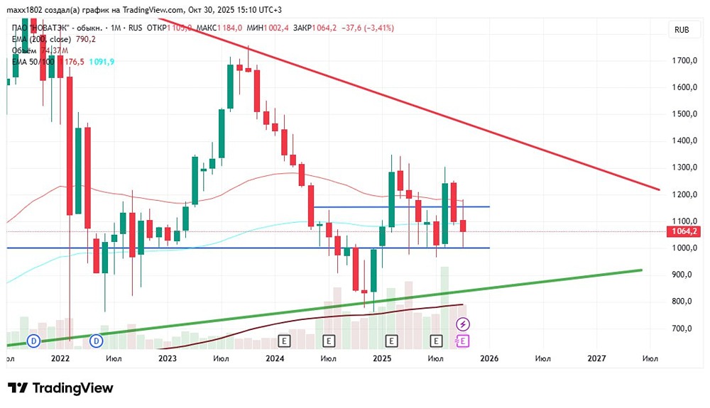 Почему уровень 1000 — ключевая поддержка для Новатэка? По данной компании приходит много новостей и все они достаточно хорошие, но вот график пока это не отображает. Разбор графика Тайм фрейм месяц Более старший тайм фрейм показывает нам отличную точку входа, как для торговли в среднесрок, так и для более долгосрочного удержания позиции. Уровень 1000 это отличная поддержка от которой последние семь месяцев цена всегда отскакивала на верх и при этом всегда достигала уровня 1150. Для среднесрочой позиции взять 15% за месяц отличный результат, и мы этим уже несколько раз воспользовались. Этот месяц по закрытию даёт все предпосылки снова увидеть наш уровень покупки и в следующем месяце. Свеча больше указывает на продолжение коррекции, но так же оставляет и шанс для роста. Я снова жду уровень 1000 и буду покупать, в случае пробоя и ухода вниз, докупать буду по 850. Идея простая и понятная, и вместе с тем риск минимальный! На данный момент рынок сильно волатильный и подвержен новостям, в любой момент может выйти новость, которая всё изменит, по этому, будьте предельно аккуратны и обязательно следите за позициями. Не является индивидуальной инвестиционной рекомендацией Пост взят с соцсети [M O N D I A R A](https://i.mondiara.com/) 👉 вот ссылка на канал: https://i.mondiara.com/i/c/novatek_analytics Скачать в [App Store](https://apps.apple.com/ru/app/m-o-n-d-i-a-r-a/id6475953453) Скачать в [Google Play](https://play.google.com/store/apps/details?id=com.mondiara.app) Валюта расчёта - Ваши добрые мысли! Спасибо, что с нами! Источник: Инвестируем Выгодно