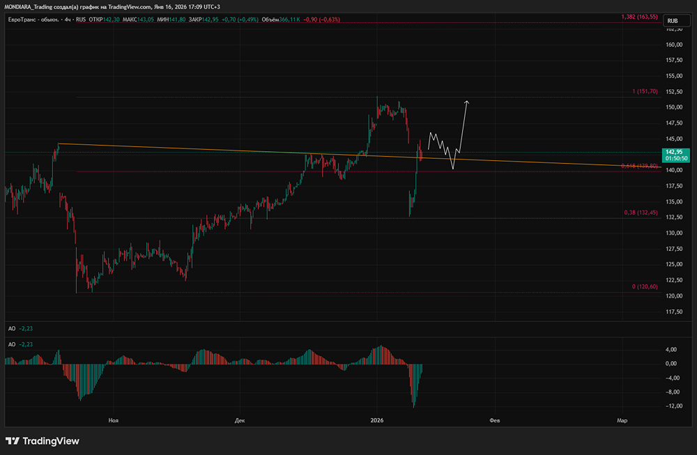 ЕвроТранс готовится к рекордному финалу Накануне компания представила предварительные финансовые результаты по итогам 2025 г. • Выручка превысила 250 млрд руб. (+34% г/г) • EBITDA превысила 24 млрд руб. (+42% г/г) • Долговая нагрузка, включая лизинг, снизилась по отношению к 30.09.2025 г. более чем на 500 млн руб. • Общий показатель Долг/EBITDA — ниже 2,4. ЕвроТранс показал сильные результаты, которые превзошли ожидания аналитиков. До выхода отчета по МСФО апеллировать мы можем пока что только выручкой и показателем EBITDA. Ускорение здесь ожидаемо серьезное. В IV квартале 2025 г. произошло некоторое замедление, но оно было прогнозируемое, ведь в октябре и начале ноября имел место топливный кризис, когда многие независимые АЗС уходили в минус по маржинальности. Однако уже в декабре ситуация полностью выправилась. Показатель чистой прибыли не раскрыт, судя по всему, он может оказаться близким к прогнозируемым компанией 8,8 млрд руб. Это может стать основанием выплаты рекордного финального дивиденда. Ожидаю, что по итогам IV квартала 2025 г. дивиденд составит порядка 18,5 руб. на акцию. Сохраняю позитивный взгляд на акции компании. Бумаги за пару дней практически закрыли дивгэп от 13 января. Думаю, что по текущим покупать еще не поздно, потенциал роста здесь сохраняется. Акции по-прежнему выглядят недооцененными, а дивдоходность остается одной из самых привлекательных на рынке. Не является индивидуальной инвестиционной рекомендацией Пост взят с соцсети [M O N D I A R A](https://i.mondiara.com/) 👉 вот ссылка на канал: https://i.mondiara.com/i/c/euvrotrans_analytics Скачать в [App Store](https://apps.apple.com/ru/app/m-o-n-d-i-a-r-a/id6475953453) Скачать в [Google Play](https://play.google.com/store/apps/details?id=com.mondiara.app) Валюта расчёта - Ваши добрые мысли! Спасибо, что с нами!