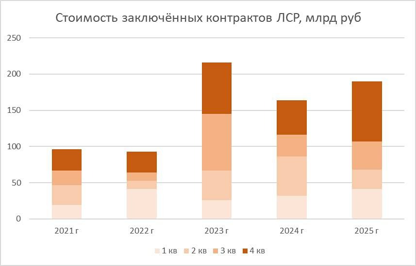 В 2025 году я не особо следил за застройщиками из-за жестких условий ДКП и спада их бизнеса. Однако в четвертом квартале началось осторожное восстановление ипотеки, и Центробанк начал постепенно снижать ключевую ставку. Рассмотрим операционный отчет ЛСР за четвертый квартал: • Новые контракты в натуральном выражении (кв. м) выросли на 63,3 % до 289 тысяч кв. м. В денежном выражении рост составил 72,3 %, достигнув 83 миллиардов рублей. Наибольший вклад в операционные результаты внесли продажи в Санкт-Петербурге. Количество контрактов как в натуральном, так и в денежном выражении увеличилось более чем в 2,5 раза. • Квартальные результаты стали рекордными за несколько лет. Чем это можно объяснить? 1. Рост цен на недвижимость. 2. Исторический максимум выдач по семейной ипотеке: её доля достигла 75 % от всех выдач. 3. Смещение сезонности на четвертый квартал из-за ограничений, которые вступят в силу с первого квартала 2026 года. • Посмотрим, что будет дальше. Снижение ключевой ставки должно позитивно сказаться на спросе. Интересно будет увидеть результаты других компаний, например, «Самолета». Не является индивидуальной инвестиционной рекомендацией Пост взят с международного сервиса для инвесторов и трейдеров [M O N D I A R A](https://i.mondiara.com/) 👉 вот ссылка на канал: https://i.mondiara.com/i/c/lsr_analytics Скачать приложение в [App Store](https://apps.apple.com/ru/app/m-o-n-d-i-a-r-a/id6475953453) Скачать приложение в [Google Play](https://play.google.com/store/apps/details?id=com.mondiara.app) Валюта расчёта - Ваши добрые мысли! Спасибо, что с нами! [M O N D I A R A](https://i.mondiara.com/) — ключевой инструмент для исследований, торговли, инвестирования и стратегического планирования на российском фондовом рынке Источник: Уютный разбирает