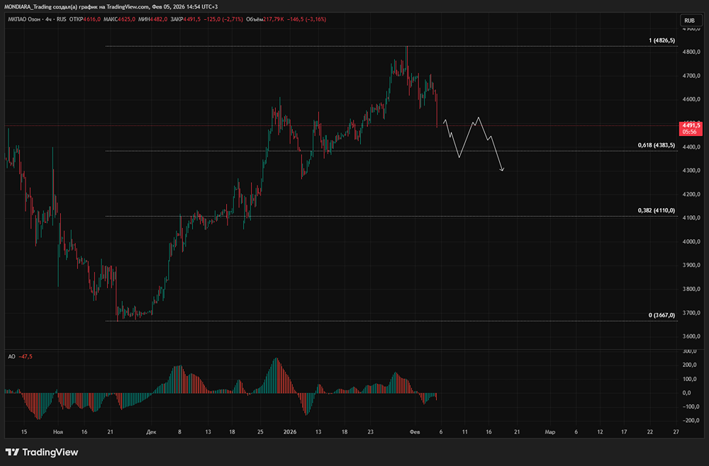 Компания «Озон» представила положительные финансовые результаты за первые девять месяцев 2025 года. Выручка выросла на 73,2%, достигнув 688,64 млрд рублей, благодаря увеличению доходов от услуг и процентных поступлений. Убыток сократился на 89% до 4,6 млрд рублей. Важно отметить, что уже второй квартал подряд «Озон» показывает чистую прибыль. Компания также улучшила прогноз на 2025 год. По словам руководства, оборот с учетом услуг увеличится на 41-43%, скорректированная EBITDA составит около 140 млрд рублей, а выручка сегмента «Финтех» вырастет на 110%. Кроме того, «Озон» объявил о запуске программы обратного выкупа акций. Программа направлена на долгосрочную мотивацию сотрудников. Бюджет выкупа до конца 2026 года составляет до 25 млрд рублей. Акции будут приобретаться дочерними компаниями группы. При этом акции, выкупленные в рамках программы, не будут участвовать в голосовании и распределении дивидендов до передачи сотрудникам. Финтех-направление показало особенно сильные результаты. За девять месяцев 2025 года количество активных клиентов выросло на 45% до 39 млн. Объем операций с Ozon Картой вне платформы превысил 60% от общего объема за третий квартал 2025 года. Выручка сегмента увеличилась на 131% до 53,9 млрд рублей за счет развития кредитного и транзакционного бизнеса. Прибыль до налогообложения выросла на 138% до 17,7 млрд рублей на фоне значительного роста выручки финтеха. На основе оптимистичных прогнозов и сильных результатов финтех-подразделения мы подтверждаем нашу инвестиционную рекомендацию «держать» и повышаем целевую цену акций «Озон». При выполнении планов, логистическая компания имеет потенциал роста на 26% до целевой цены в 5700 рублей в течение следующего года. Не является индивидуальной инвестиционной рекомендацией Пост взят с международного сервиса для инвесторов и трейдеров [M O N D I A R A](https://i.mondiara.com/) 👉 вот ссылка на канал: https://i.mondiara.com/i/c/ozon_analytics Скачать приложение в [App Store](https://apps.apple.com/ru/app/m-o-n-d-i-a-r-a/id6475953453) Скачать приложение в [Google Play](https://play.google.com/store/apps/details?id=com.mondiara.app) Валюта расчёта - Ваши добрые мысли! Спасибо, что с нами! [M O N D I A R A](https://i.mondiara.com/) — ключевой инструмент для исследований, торговли, инвестирования и стратегического планирования на российском фондовом рынке Источник: Инвестидеи | акции РФ