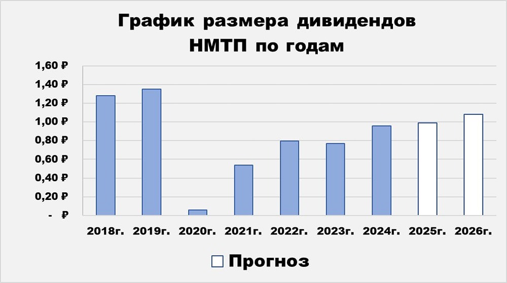 НМТП — ведущий российский портовый оператор, работающий в Новороссийском морском порту. Сектор: Транспорт и логистика Цена акции: 8,64 рубля ★ Финансовые показатели Выручка: - 2020: 45,6 млрд рублей - 2022: 55,1 млрд рублей - 2023: 67,5 млрд рублей - 2024: 71,2 млрд рублей - 9 месяцев 2025: 56,3 млрд рублей Средние темпы роста выручки — 3%. Чистая прибыль: - 2020: 4,8 млрд рублей - 2022: 34,5 млрд рублей - 2023: 29,6 млрд рублей - 2024: 37,4 млрд рублей - 9 месяцев 2025: 31,8 млрд рублей Средние темпы роста прибыли — 11%. ★ Мультипликаторы - EPS (прибыль на акцию): 185,7% за 10 лет, средний темп роста — 11%. - P/E (цена/прибыль): 4,37 (лучше среднего по отрасли — 5,7). - P/S (цена/выручка): 2,3 (хуже среднего по отрасли — 1,8). - P/B (цена/балансовая стоимость): 1,1 (лучше среднего по отрасли — 1,15). - Долг/капитал: 0,08 (лучше среднего по отрасли — 0,22). - ROE (рентабельность собственного капитала): 21% (лучше среднего по отрасли — 17%). - PEG (коэффициент роста): 0,4 (недооценена). - Модель DCF (дисконтированных денежных потоков): 10,9 рубля. На основе этих показателей можно сделать вывод, что компания недооценена. ★ Вывод Результаты за третий квартал неплохие. Учитывая текущую экономическую ситуацию, атаки беспилотников и рост налогов, компания демонстрирует стабильность. За четвертый квартал также ожидаю хороший отчет. В портах Новороссийска и Приморска совокупный грузооборот за 2025 год вырос на 2,8% и достиг 231,9 млн тонн. Индексация тарифов поддерживает выручку, хотя ФАС отменил индексацию для сухих грузов. Однако значительного роста показателей не предвидится. Увеличение грузопотока требует больших капитальных вложений, что и делает компания. Например, в третьем квартале капитальные затраты НМТП удвоились, достигнув 6,8 млрд рублей, в основном на строительство перегрузочного комплекса в Новороссийске. Планируемый грузооборот комплекса — не менее 6 млн тонн сухих грузов в год с перспективой увеличения до 12 млн тонн. Проект планируется завершить к 2027 году. В целом, я оцениваю НМТП нейтрально. Это крепкая компания со средней дивидендной доходностью и потенциалом роста производственных мощностей примерно на 10% к концу 2027 года. Однако значительного дисконта или сильного потенциала роста я не вижу. ★ Риски - Атаки на НПЗ и порты. - Снижение грузооборота. ★ Справедливая цена акции На мой взгляд, справедливая цена акции составляет 10,3 рубля. ★ Дивиденды Дивидендная доходность компании за 2024 год составила 10,6%, или 0,9573 рубля на акцию. Темпы роста дивидендов в год — 15,2%. Теоретическая стоимость актива — 10,2 рубля. Прогноз дивидендов за 2025 год: 0,9–1 рубль (10,4–11,6%). На дивиденды за 9 месяцев 2025 года компания уже заработала около 0,8 рубля. Учитывая смягчение денежно-кредитной политики Банка России, акции НМТП могут быть интересны долгосрочным инвесторам как консервативная дивидендная история. Согласно стратегии развития до 2029 года, компания планирует направлять на дивиденды не менее 50% от чистой прибыли по МСФО, учитывая размер свободного денежного потока. Не является индивидуальной инвестиционной рекомендацией Пост взят с международного сервиса для инвесторов и трейдеров [M O N D I A R A](https://i.mondiara.com/) 👉 вот ссылка на канал: https://i.mondiara.com/i/c/nmtp_analytics Скачать приложение в [App Store](https://apps.apple.com/ru/app/m-o-n-d-i-a-r-a/id6475953453) Скачать приложение в [Google Play](https://play.google.com/store/apps/details?id=com.mondiara.app) Валюта расчёта - Ваши добрые мысли! Спасибо, что с нами! [M O N D I A R A](https://i.mondiara.com/) — ключ