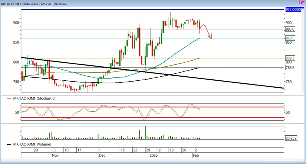Технический анализ акций ЮМГ: новые цели по шорту
