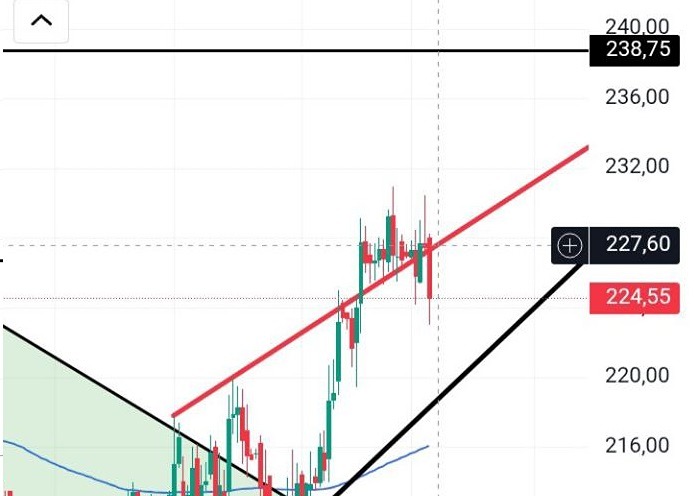 Ушли под уровень поддержки в виде красного уровня, и пока цена под ним (ниже 227.6), она будет стремиться вниз к уровню 219 (трендовая черная линия), где я открою лонг. Аналогично зайду в позицию при закреплении выше 227.6. Тогда цель роста сместится к горизонтальному сопротивлению 238.7. Не является индивидуальной инвестиционной рекомендацией Пост взят с международного сервиса для инвесторов и трейдеров [M O N D I A R A](https://i.mondiara.com/) 👉 вот ссылка на канал: https://i.mondiara.com/i/c/mts_analytics Скачать приложение в [App Store](https://apps.apple.com/ru/app/m-o-n-d-i-a-r-a/id6475953453) Скачать приложение в [Google Play](https://play.google.com/store/apps/details?id=com.mondiara.app) Валюта расчёта - Ваши добрые мысли! Спасибо, что с нами! [M O N D I A R A](https://i.mondiara.com/) — ключевой инструмент для исследований, торговли, инвестирования и стратегического планирования на российском фондовом рынке Источник: Grionov Capital