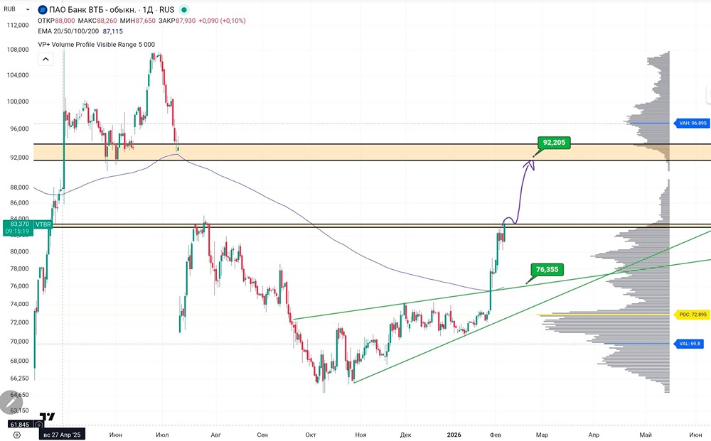 ВТБ на пороге роста: какие уровни определят движение акций на 15% вверх?
