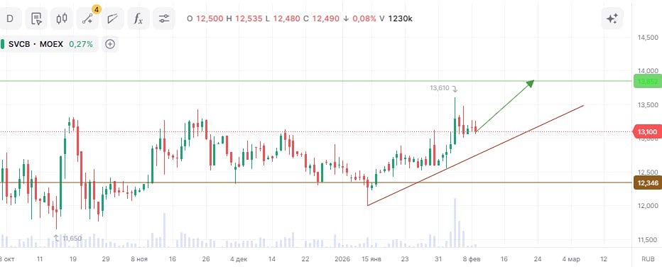 Мнение: Финам ПАО «Совкомбанк» Тикер: SVCB Идея: Long Срок идеи: 3-4 недели Цель: 13,852 руб. Потенциал идеи: 5,74% Объем входа: 8% Стоп-приказ: 12,346 руб. Технический анализ Актив в восходящем тренде. Объем позиции — 8%, стоп-заявка на уровне 12,346 руб., риск на портфель — 0,46%. Соотношение прибыль/риск — 1. Фундаментальные факторы Совкомбанк — крупный российский банк с развитой экосистемой услуг, включая страхование, лизинг и технологии. Операционные показатели улучшаются: выручка за квартал выросла на 4%, чистая процентная маржа — на 1 п.п., комиссионные доходы — на 15%. Рост бизнеса страхования и платежных сервисов на 51%, снижение стоимости риска в рознице свидетельствуют о успешной диверсификации и контроле качества портфеля, что создает базу для дальнейшего роста прибыли. Не является индивидуальной инвестиционной рекомендацией Пост взят с соцсети [M O N D I A R A](https://i.mondiara.com/) 👉 вот ссылка на канал: https://i.mondiara.com/i/c/sovcombank_analytics Скачать в [App Store](https://apps.apple.com/ru/app/m-o-n-d-i-a-r-a/id6475953453) Скачать в [Google Play](https://play.google.com/store/apps/details?id=com.mondiara.app) Валюта расчёта - Ваши добрые мысли! Спасибо, что с нами! Источник: t.me/finamalert