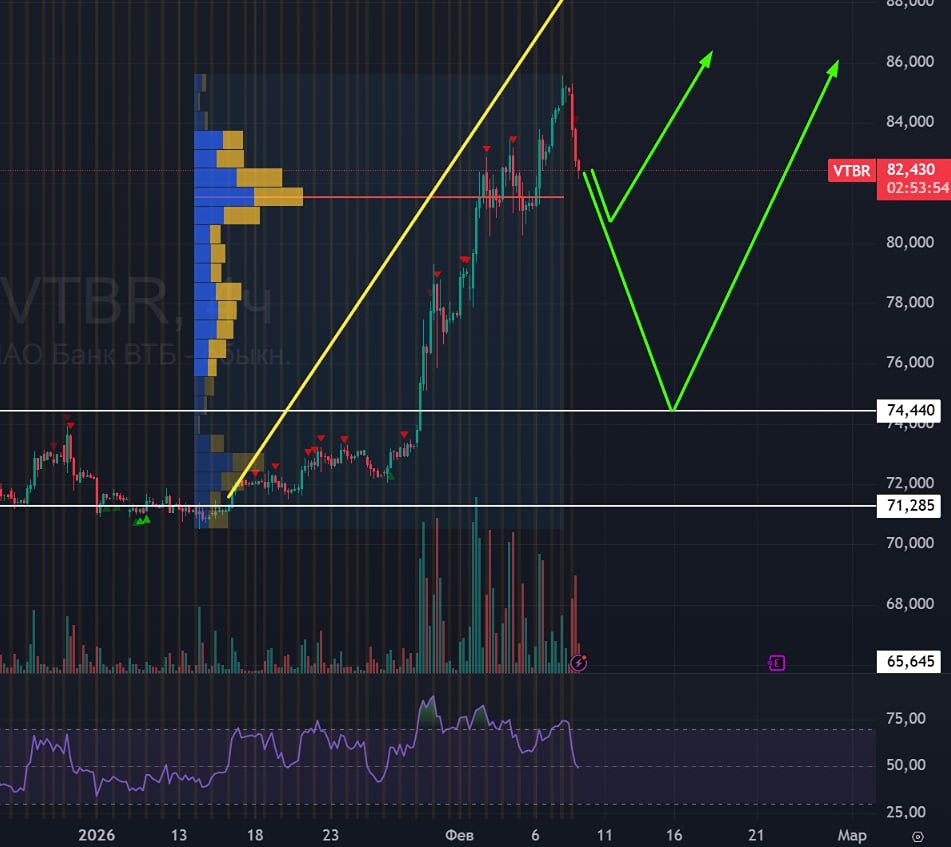 В субботу и воскресенье в акциях ВТБ был существенный рост. Без причины, без новостей. Этот факт послужил причиной выхода из лонга. Сегодня уже откатываем сильнее, чем рынок в среднем. Весь вопрос в том, что будет с ВТБ дальше? Так как я жду российский рынок вверх среднесрочно, то и ВТБ в этой перспективе буду ждать вверх. Поэтому нужно определить точку входа: их я вижу в двух местах — либо на поедании ликвидности, которая находится чуть ниже, либо на тесте накопления. Жду локально ВТБ ниже, после чего буду ждать разгон ВТБ вверх на закрытие гэпа. Не является индивидуальной инвестиционной рекомендацией [mondiara.com](https://mondiara.com) 👆 Больше новостей и анализа Скачать приложение в [App Store](https://apps.apple.com/ru/app/m-o-n-d-i-a-r-a/id6475953453) Скачать приложение в [Google Play](https://play.google.com/store/apps/details?id=com.mondiara.app) Пост взят с международного сервиса для инвесторов и трейдеров [M O N D I A R A](https://i.mondiara.com/) Источник: Bogdanoff invest