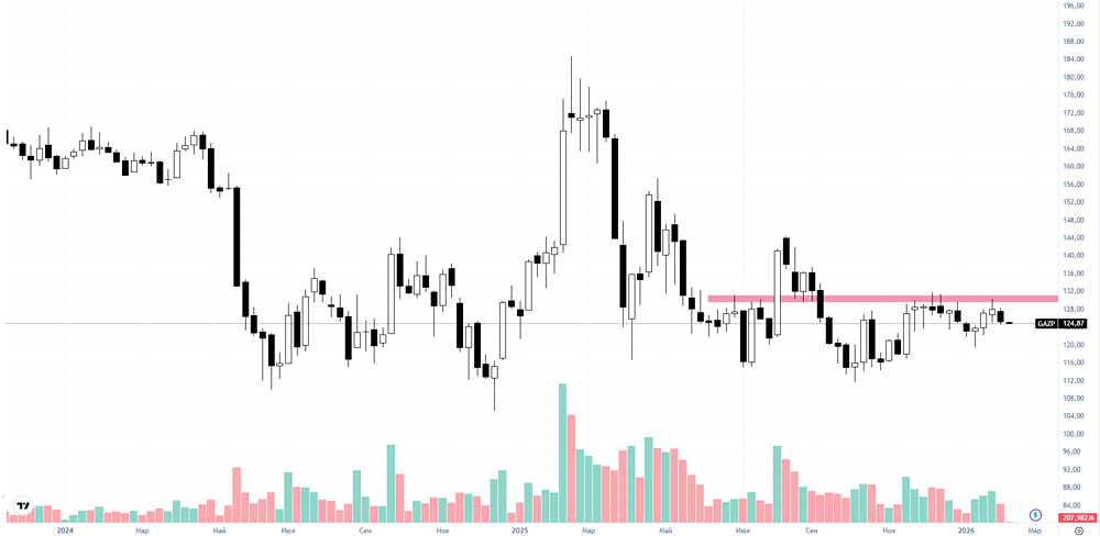 Мнение: БКС Экспресс Прогноз по акциям Газпром Акции Газпрома в пятницу закрылись на уровне 125,53 руб., потеряв 0,05%. Объем торгов снизился до 2,4 млрд руб. В выходные котировки опустились на 0,16% до 125,33 руб., а сегодня утром актив потерял почти 0,5%. Краткосрочная картина Акции Газпрома снова не смогли преодолеть сопротивление на уровне 130 руб. и начали глубокую коррекцию. В предыдущем обзоре мы отмечали, что цели снижения могут быть в диапазоне 122–123 руб. Сегодня утром акции теряют поддержку на уровне 125 руб. На часовых графиках видна локальная перепроданность, что может привести к краткосрочному отскоку с тестом уровня 125 руб. в качестве сопротивления. Внешний фон Индекс S&P 500 вырос на 1,97% в пятницу. Фьючерсы на этот индекс сегодня прибавляют 0,12%. Фьючерсы на нефть марки Brent (ближайший контракт на ICE Europe) торгуются около $67,26 (-1,16%). Уровни сопротивления: 125 / 126,1 / 126,8 Уровни поддержки: 123 / 122 / 120 Долгосрочная картина У акций Газпрома нет долгосрочного тренда — последний был утрачен в прошлом году. Текущая динамика скорее боковая, и котировки могут оставаться в этом состоянии долгое время. Существует блок консолидации с границами 130–155 руб., который наблюдался в 2013–2017 годах. Если учитывать выбросы, этот диапазон расширяется до 110–170 руб. Сейчас акции находятся ближе к нижней границе этого глобального бокового диапазона. Это повышает вероятность их движения к верхней границе в среднесрочной перспективе. Согласно фундаментальному анализу, целевая цена акций Газпрома от БКС составляет 130 руб., прогноз — «негативный». Автор: bcs-express.ru Не является индивидуальной инвестиционной рекомендацией Пост взят с соцсети [M O N D I A R A](https://i.mondiara.com/) 👉 вот ссылка на канал: https://i.mondiara.com/i/c/gazprom_analytics Скачать в [App Store](https://apps.apple.com/ru/app/m-o-n-d-i-a-r-a/id6475953453) Скачать в [Google Play](https://play.google.com/store/apps/details?id=com.mondiara.app) Валюта расчёта - Ваши добрые мысли! Спасибо, что с нами! Источник: bcs-express.ru