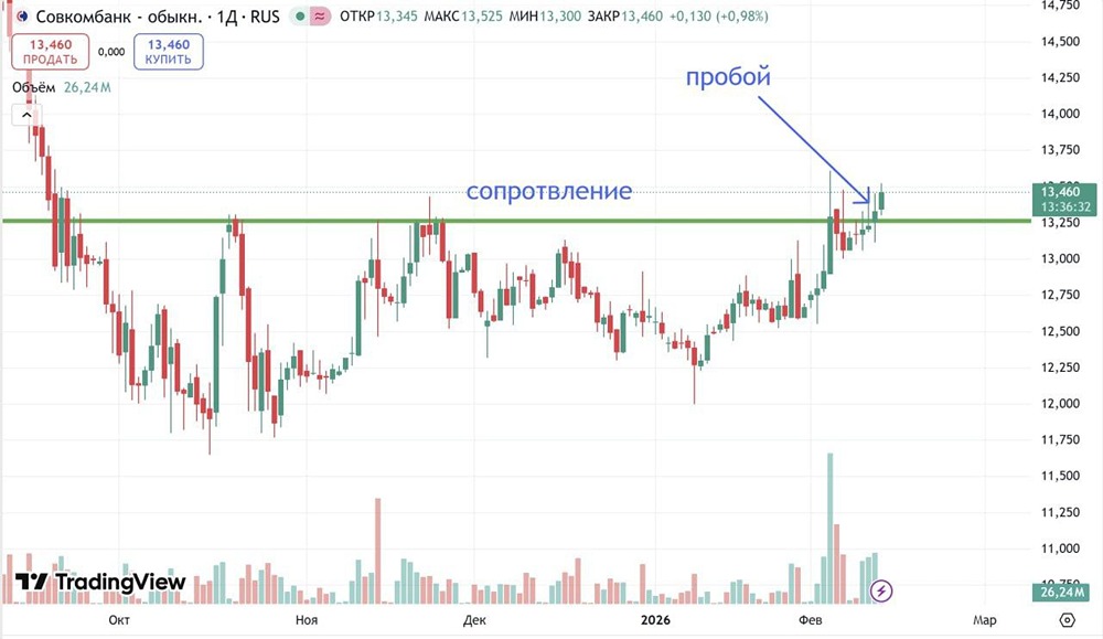 Неплохо выглядит пробой сопротивления. Сейчас идёт закрепление с первой целью на 15 рублей. Есть нюанс: данный банк выигрывает от снижения ставки, и если ЦБ удивит и снизит завтра, то мини-ракета тут может быть. Не является индивидуальной инвестиционной рекомендацией [mondiara.com](https://mondiara.com) 👆 Больше новостей и анализа Скачать приложение в [App Store](https://apps.apple.com/ru/app/m-o-n-d-i-a-r-a/id6475953453) Скачать приложение в [Google Play](https://play.google.com/store/apps/details?id=com.mondiara.app) Пост взят с международного сервиса для инвесторов и трейдеров [M O N D I A R A](https://i.mondiara.com/) Источник: Биржевой трейдинг
