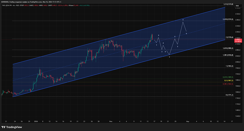 Бумаги «ДОМ.РФ» сегодня обновили исторические пики, развивая позитивную динамику от двухнедельных минимумов. В среду, 18 февраля, компания проведет День инвестора. На прошлой неделе наблюдательный совет «ДОМ.РФ» утвердил стратегию повышения акционерной стоимости, в рамках которой предусматривается рост чистой прибыли темпом выше 15% в год и выплата дивидендов с коэффициентом 50% чистой прибыли. Реализация стратегии открывает хорошие дивидендные перспективы. Ранее в «ДОМ.РФ» сообщили, что выплаты по результатам 2025 г. могут составить 240–245 руб. на акцию (текущая дивидендная доходность 11–11,2%). Не является индивидуальной инвестиционной рекомендацией [mondiara.com](https://mondiara.com) 👆 Больше новостей и анализа Скачать приложение в [App Store](https://apps.apple.com/ru/app/m-o-n-d-i-a-r-a/id6475953453) Скачать приложение в [Google Play](https://play.google.com/store/apps/details?id=com.mondiara.app) Пост взят с международного сервиса для инвесторов и трейдеров [M O N D I A R A](https://i.mondiara.com/) Источник: Инсайдер Мосбиржи