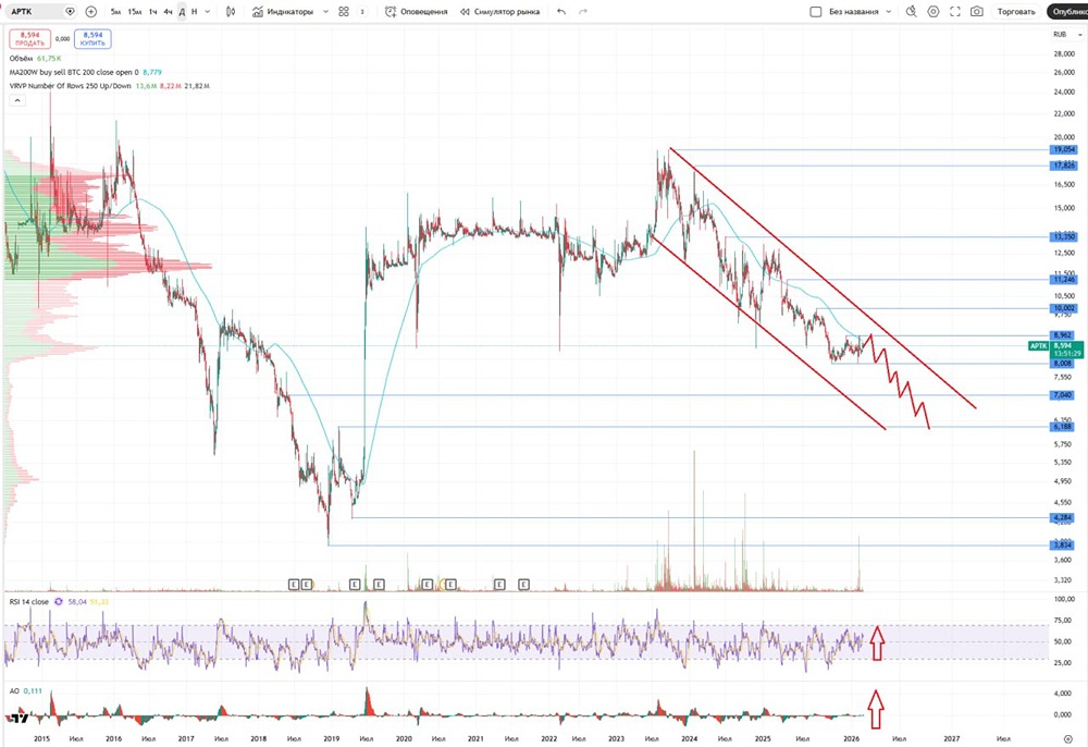 Анализ компании Сектор: розничная торговля лекарствами Скоро будем обновлять список компаний для анализа. Последний раз я рассматривал сеть аптек «36.6» 30 марта 2025 года, когда акции стоили 11,49 рубля. Я ожидал снижения до 9,8 рубля, затем роста до 12,9 рубля и снова падения. Я также отмечал, что справедливая стоимость акций компании составляет около 4 рублей. После моего обзора акции начали падать и опустились до 9,7 рубля, после чего произошел отскок до 11,26 рубля, а затем они продолжили снижаться, падая до 8 рублей. Хотя не точно, но снижение, отскок и дальнейшее снижение соответствовали моим ожиданиям. Сейчас акции торгуются по 8,6 рубля. Давайте посмотрим, что ждет компанию дальше. Основные метрики - Капитализация: 850 млн долларов. - P/E: 262,01 (очень высокое значение из-за низкой прибыли). - P/S: 0,67. - P/B: отрицательное значение. - EPS: 0,03 рубля. - EBITDA: 14,48 млрд рублей. - EV/EBITDA: 7,29. Компания стала дешевле по сравнению с прошлым обзором. Новостной фон - Финансовые результаты за 2025 год: выручка выросла на 21% до 117,4 млрд рублей, EBITDA — на 27% до 8,5 млрд рублей при рентабельности 8,1%. - Суд снял арест со счетов и активов компании. - Активы компании и двух бывших совладельцев оказались под арестом на 3,7 млрд рублей по требованию ростовской компании «Агро Строй+». - В первом полугодии 2025 года выручка выросла на 23,1% до 51,1 млрд рублей. Финансовое здоровье - Собственный капитал за первое полугодие 2025 года вырос на 1% до минус 7,52 млрд рублей (отрицательное значение). - Чистый долг вырос на 8%. - Net Debt / EBITDA: 2,91 (высокая, но не критическая долговая нагрузка, ниже, чем в 2024 году). В классическом понимании финансовое здоровье компании плохое, но ситуация чуть лучше, чем раньше. Выручка и прибыль - Выручка за первое полугодие 2025 года выросла на 11%, а в 2024 году — на 29%. - Прибыль за первое полугодие 2025 года снизилась на 7%, рентабельность остается низкой (249 млн рублей). - Свободный денежный поток снизился на 40% до 3,39 млрд рублей. Будущее и оценки Прогнозов нет. Сравнение с конкурентами На публичных торгах нет других сетей аптек. По капитализации компания средняя, по метрикам — дороже сектора, по долговой нагрузке — хуже, по рентабельности — слабее, но по росту выручки за 5 лет — лучше. Дивиденды Дивиденды не выплачиваются. Технический анализ Мои мысли по движению цены отображены на графике. Выводы Не вижу привлекательных факторов для инвесторов. Рост выручки недостаточен, компания с отрицательным собственным капиталом и низкой прибыльностью. По метрикам она оценивается дороже других сетей, что вызывает сомнения. Не является индивидуальной инвестиционной рекомендацией Пост взят с международного сервиса для инвесторов и трейдеров [M O N D I A R A](https://mondiara.com) Источник: Павел Шумилов
