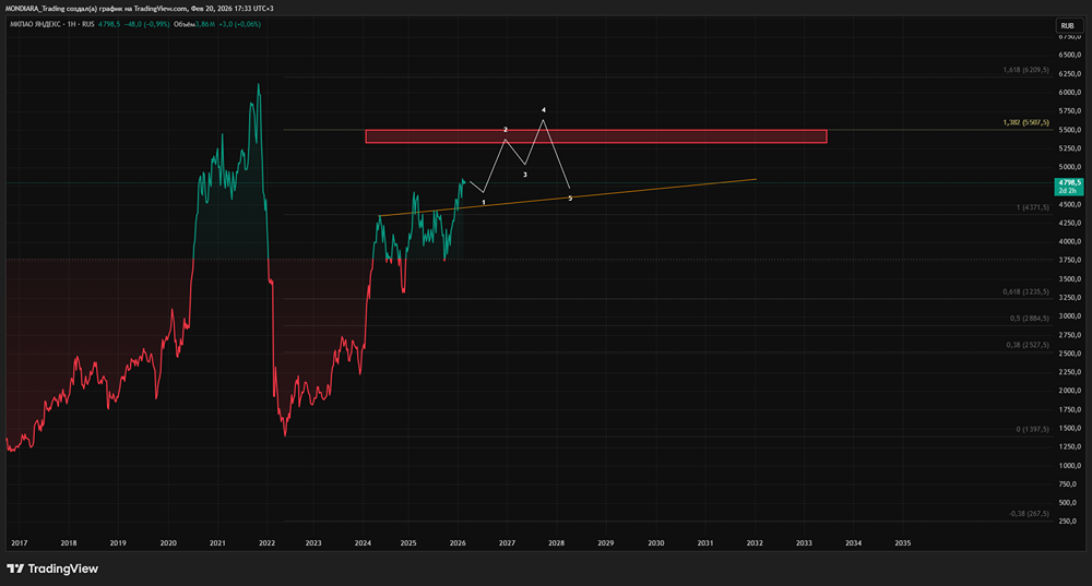 Яндекс объявил финансовые результаты за 2025 год: рекордные выручка и EBITDA 17 февраля 2026 года Яндекс подвел итоги 2025 года. Компания показала уверенный рост, улучшила рентабельность и увеличила дивиденды. Ключевые финансовые показатели (2025/2024): - Выручка: 1,44 трлн рублей (+32%). - Скорректированная EBITDA: 280 млрд рублей (+49%), рентабельность 19,5% (+2,3 п. п.). - Скорректированная чистая прибыль: 141 млрд рублей (+40%). Результаты сегментов (2025 год): Поисковые сервисы и ИИ остаются ядром экосистемы с высокой маржинальностью: - Выручка: 551 млрд рублей (+10%). - Скорр. EBITDA: 245 млрд рублей (+12%), рентабельность 44,5%. - Доля Яндекса на российском поисковом рынке достигла рекордных 69,3% (+3 п. п.). - Алиса AI: 19 млн пользователей в неделю, 19,3 млн активных станций в месяц. Инвестиции в ИИ-ассистента составили 55 млрд рублей. Городские сервисы стали основным драйвером роста: - Выручка: 804 млрд рублей (+36%). - Скорр. EBITDA: 63 млрд рублей (против 17,6 млрд в 2024), рентабельность 7,8% (+4,8 п. п.). - Райдтех: выручка выросла на 25%. - Электронная коммерция: выручка увеличилась на 44%, маркетплейс Яндекс Маркет стал прибыльным. - Рекламная платформа UrbanAds: рост на 31%, выручка достигла 21 млрд рублей. Персональные сервисы показали самый высокий темп роста: - Выручка: 214 млрд рублей (+61%). - Скорр. EBITDA: 7 млрд рублей (против убытка 8,7 млрд в 2024). - Финансовые сервисы: выручка выросла на 156%, оборот превысил 1 трлн рублей. - Число подписчиков Яндекс Плюса: 47,5 млн (+21%). - Оборот продаж билетов на Яндекс Афише: +62%, до 46,6 млрд рублей. B2B-сервисы (Yandex Cloud, Яндекс 360) опережают рынок: - Выручка: 48 млрд рублей (+48%). - Скорр. EBITDA: 9,4 млрд рублей (+141%), рентабельность 19,6% (+7,6 п. п.). - Yandex Cloud: 93% выручки от внешних клиентов. Доходы от ИИ и кибербезопасности выросли вдвое. - Яндекс 360: 8,1 млн платных аккаунтов. Автономные технологии — перспективное направление с высокой рентабельностью: - Выручка: 0,6 млрд рублей (+280% г/г). - Скорр. EBITDA: -15,4 млрд рублей (рост убытка на 85% из-за инвестиций). - Инвестиции в направление: около 18 млрд рублей. - Пробег беспилотного транспорта: более 37 млн км. - Планы на 2026 год: 5000 роботов-курьеров, 200 роботакси и 70 автономных грузовиков. О расходах на мотивацию: Расходы на акции составили 50 млрд рублей (-44% г/г). Это важная часть программы мотивации сотрудников. Ликвидность и долг: - Остаток денежных средств и депозитов: 250 млрд рублей (рост на 18% г/г). - Чистый долг к EBITDA: 0,2х (низкий уровень долговой нагрузки). Капитальные затраты: Инвестиции в 2025 году составили 145 млрд рублей (+17% г/г). Основные вложения направлены в ИИ, облачную инфраструктуру и беспилотные технологии. Прогноз на 2026 год: - Рост выручки: около 20% г/г. - Скорр. EBITDA: около 350 млрд рублей (+25% г/г). Дивиденды: Дивидендная политика не содержит конкретных указаний. Выплаты осуществляются дважды в год. Менеджмент рекомендовал совету директоров выплату за 2025 год в размере 110 рублей на акцию (+37,5% к предыдущему году). В 2024 году дивиденды составили 160 рублей на акцию (дважды по 80 рублей), доходность — около 4%. Текущие инвестиции: Доля компании в моем портфеле составляет 5,2% (192 тыс. рублей). Я регулярно докупаю акции. Яндекс завершил 2025 год с сильными результатами, сочетая зрелость поискового бизнеса с агрессивным ростом перспективных направлений (финтех, e-commerce, облачные сервисы). Компания продолжает масштабные инвестиции в ИИ и автомобильный транспорт, увеличивая дивиденды. Не является индивидуальной инвести