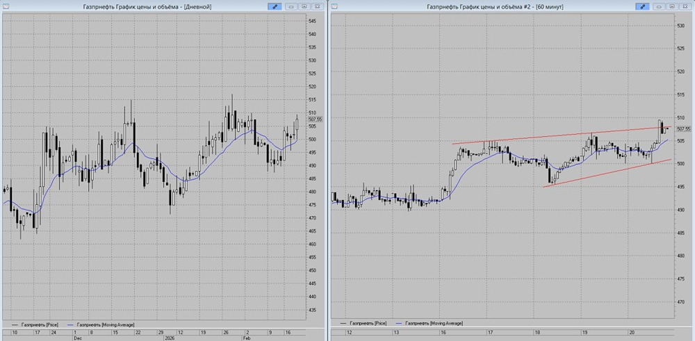 В «Газпромнефть» есть формирование бычьей конструкции «Треугольник» с началом её реализации. В моменте есть формирование часовой концентрации на пробой верхней границы конструкции, что в итоге приведёт к её реализации с целью около цены 517 руб. По текущим есть сигнал в лонг со стоп-лоссом на цене 504 руб. Фиксацию прибыли лучше начинать с цены 515 руб. и выше. Не является индивидуальной инвестиционной рекомендацией Пост взят с международного сервиса для инвесторов и трейдеров [M O N D I A R A](https://mondiara.com) [Скачать](https://apps.apple.com/ru/app/m-o-n-d-i-a-r-a/id6475953453) приложение в App Store [Скачать](https://play.google.com/store/apps/details?id=com.mondiara.app) приложение в Google Play Источник: Тех.Анализ