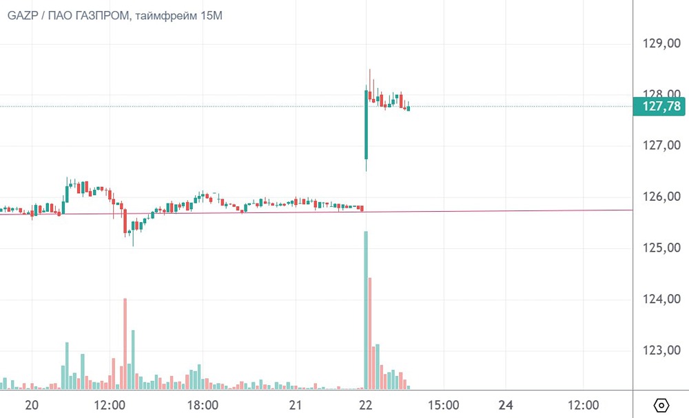 22 февраля на торгах выходного дня цена акций «Газпрома» выросла на 1,6% до 128 руб. на фоне появившейся информации об обсуждении между Дональдом Трампом и Владимиром Путиным возможного запуска газопроводов «Северный поток» под руководством США. Не является индивидуальной инвестиционной рекомендацией Пост взят с международного сервиса для инвесторов и трейдеров [M O N D I A R A](https://mondiara.com) [Скачать](https://apps.apple.com/ru/app/m-o-n-d-i-a-r-a/id6475953453) приложение в App Store [Скачать](https://play.google.com/store/apps/details?id=com.mondiara.app) приложение в Google Play Источник: СМАРТЛАБ НОВОСТИ