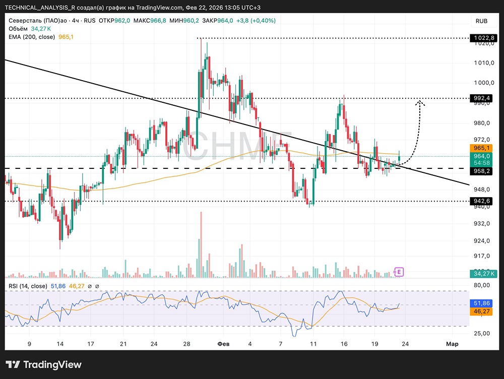 Акции Северсталь: ключевой уровень 965 определит дальнейшее движение