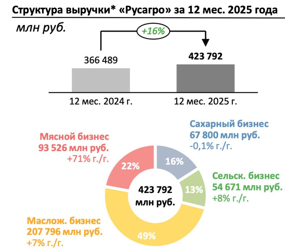 Русагро порадовала инвесторов новостями. Брокеры наконец-то разъяснили вопросы налогообложения после редомициляции. У многих инвесторов налоговая база оказалась сопоставимой с размером всей позиции. Теперь при продаже можно учесть в расходах 93,62% от стоимости покупки расписок. Это упрощает жизнь, но есть и другие важные моменты. Выручка компании за 2025 год выросла на 16% до 423,7 млрд рублей. Финансовый отчет по МСФО ожидается в марте. Если учесть историческую маржу около 9%, то чистая прибыль может составить около 38 млрд рублей, если не возникнут новые проблемы. Операционные результаты компании остаются сильными. Мясной сегмент вырос на 71% благодаря консолидации «Агро-Белогорья». Выручка масложирового и сельскохозяйственного сегментов увеличилась на 7% и 8% соответственно. Русагро становится крупным агрогигантом, но за этим успехом скрывается судебный процесс. О нем поговорим позже. Рентабельность капитала (ROE) снизилась до 14,7%, что ниже обычных 20–25%. Это связано с ростом стоимости заимствований и увеличением долговой нагрузки. Акции Русагро торгуются с аномально низкими мультипликаторами: P/E = 3,5 и P/BV = 0,5. Это означает, что компания продается за полцены от капитала. Однако это не признак рыночной неэффективности, а плата за риск. Основатель группы Вадим Мошкович и бывший CEO Басов находятся под стражей с марта 2025 года по обвинениям в мошенничестве, отмывании денег, банкротстве и взятке экс-чиновнику. Следствие оценивает ущерб в 86 млрд рублей. Хотя обвинения предъявлены физлицам, рынок задается вопросом: кто станет новым мажоритарием, если акции конфискуют? Русагро — это кейс для тех, кто готов к риску и умеет анализировать ситуацию. Бизнес компании продолжает расти, налоги урегулированы, а дисконт к капиталу создает запас прочности. Если активы компании не пострадают, потенциал для восстановления велик. Однако негативный сентимент из-за судебного процесса будет давить на акции еще долго. Я внимательно слежу за этой историей, но пока не имею позиции в бумагах. Не является индивидуальной инвестиционной рекомендацией Пост взят с международного сервиса для инвесторов и трейдеров [M O N D I A R A](https://mondiara.com) [Скачать](https://apps.apple.com/ru/app/m-o-n-d-i-a-r-a/id6475953453) приложение в App Store [Скачать](https://play.google.com/store/apps/details?id=com.mondiara.app) приложение в Google Play Источник: ИнвестТема | Литвинов Владимир