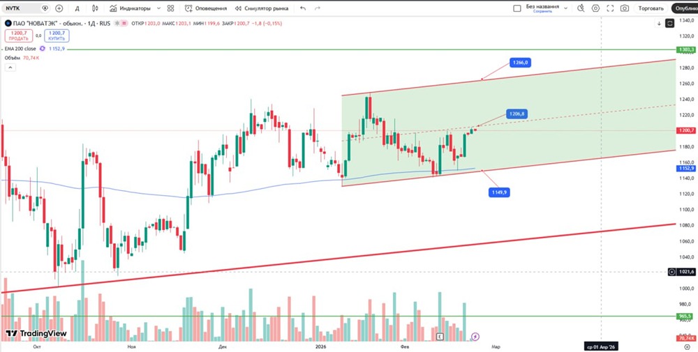 НОВАТЭК — компания с более чем 25-летним опытом в российской нефтегазовой индустрии. Она занимается разведкой, добычей, переработкой и продажей природного газа и жидких углеводородов. Финансовые показатели Выручка: - 2024: 1546 млрд ₽ (+18,4% год к году) - 2025 (LTM): 1446 млрд ₽ (-7% год к году) Среднегодовой рост: ≈10,2% Чистая прибыль: - 2024: 493 млрд ₽ (+10,3% год к году) - 2024 (LTM): 183 млрд ₽ (-64% год к году) Среднегодовой рост: ≈8% Мультипликаторы: - P/E: 19,9 (среднее — 16,8) - P/BV: 1,28 (среднее — 2,32) - ROE: 6,5% (среднее — 8,6%) Вывод: Компания недооценена. Перспективы Рост НОВАТЭКа связан с новыми СПГ-проектами. Один из них — Мурманский СПГ мощностью 20 млн тонн в год. Начало строительства запланировано на август 2024 года, а добыча должна начаться в конце 2027 года. В 2024 году акции могут вырасти из-за увеличения добычи на «Арктик СПГ — 2». Первая линия завода готова к работе, но есть проблема — нехватка танкеров из-за санкций. Поставки СПГ-танкеров ледового класса Arc7 могли бы поддержать котировки. Технический анализ ➥ Цена акции уперлась в среднюю линию восходящего канала. Если она закрепится выше середины канала (1206,8), цель будет достигнута на уровне 1266 (верх канала). ➥ Если цена опустится ниже середины канала, котировки могут упасть до 1149, где также возможно открытие позиции. Не является индивидуальной инвестиционной рекомендацией Пост взят с международного сервиса для инвесторов и трейдеров [M O N D I A R A](https://mondiara.com) [Скачать](https://apps.apple.com/ru/app/m-o-n-d-i-a-r-a/id6475953453) приложение в App Store [Скачать](https://play.google.com/store/apps/details?id=com.mondiara.app) приложение в Google Play Источник: БАНКОМАТ