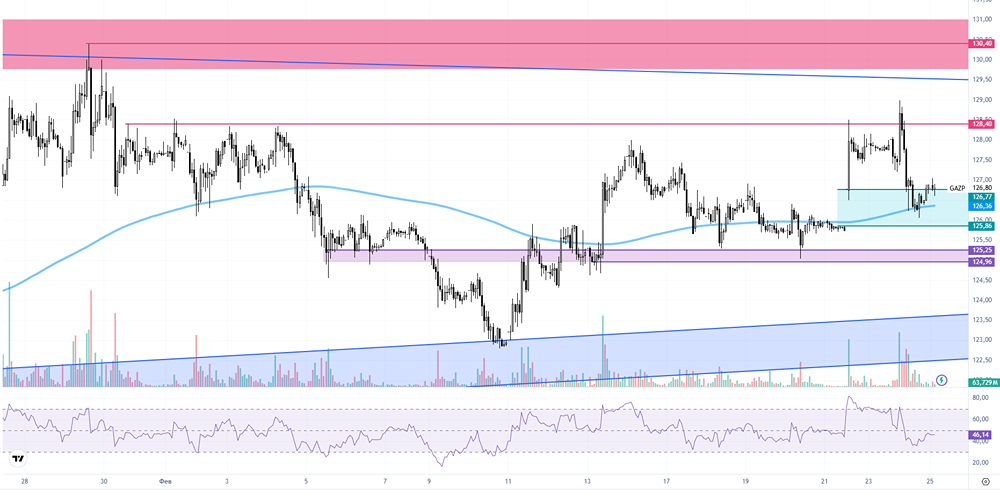 Мнение: БКС Экспресс Прогноз по акциям Газпрома Акции Газпрома вчера снизились на 0,77%. Цена закрытия основной сессии составила 126,27 руб. (-1,25%), вечерней — 126,89 руб. (-0,77%). Общий дневной объем торгов достиг 7 млрд руб. Сегодня утром акции теряют 0,1%. Краткосрочная картина • В предыдущем обзоре мы предполагали, что акции Газпрома начнут тестировать зону восходящего гэпа 125,86–126,77 руб. Это и произошло. Цена скорректировалась к 200-часовой скользящей средней (EMA 200, 126,36 руб.) и пока отталкивается от нее вверх. В позитивном сценарии котировки могут возобновить рост — локальный перегрев снят. Пробой зоны восходящего гэпа вниз укажет на слабость покупателей. • Ближайшая поддержка — 126,36 руб. Далее — 125,86 руб., нижняя граница восходящего гэпа. Еще ниже — блок 124,96–125,25 руб. • Ближайшее сопротивление — 127,5 руб. Затем — 128,5 и 129,5 руб. В целом акции находятся вблизи ключевого сопротивления в районе 130 руб. • На дневном графике видно, что за последние три месяца цена неоднократно подходила к зоне сопротивления в районе 130 руб., но пока не смогла ее преодолеть. Однако чем чаще котировки касаются сопротивления, тем выше вероятность его пробоя в среднесрочной перспективе. В краткосроке возможен очередной откат цены от сопротивления. Внешний фон Индекс S&P 500 вырос на 0,77%. Утром фьючерсы на бенчмарк находятся около нуля. Фьючерсы на нефть марки Brent (ICE Europe) торгуются на уровне $71 (+0,65%). Уровни сопротивления: 127,5 / 128,5 / 129,5 Уровни поддержки: 126,36 / 125,86 / 124,96 Долгосрочная картина У акций Газпрома нет долгосрочных трендов — последний был утерян в прошлом году. Динамика характеризуется как боковая. В таком состоянии котировки могут оставаться долго. Просматривается блок консолидации с границами 130–155 руб., где актив торговался в 2013–2017 годах. С учетом выбросов блок расширяется до 110–170 руб. Сейчас котировки находятся ближе к нижней границе глобального бокового диапазона. Это повышает вероятность похода к верхней границе в среднесрочной перспективе. Автор: Рокотянская Людмила Не является индивидуальной инвестиционной рекомендацией [mondiara.com](https://mondiara.com) 👆 Больше новостей и анализа Скачать приложение в [App Store](https://apps.apple.com/ru/app/m-o-n-d-i-a-r-a/id6475953453) Скачать приложение в [Google Play](https://play.google.com/store/apps/details?id=com.mondiara.app) Пост взят с международного сервиса для инвесторов и трейдеров [M O N D I A R A](https://i.mondiara.com/) Источник: bcs-express.ru