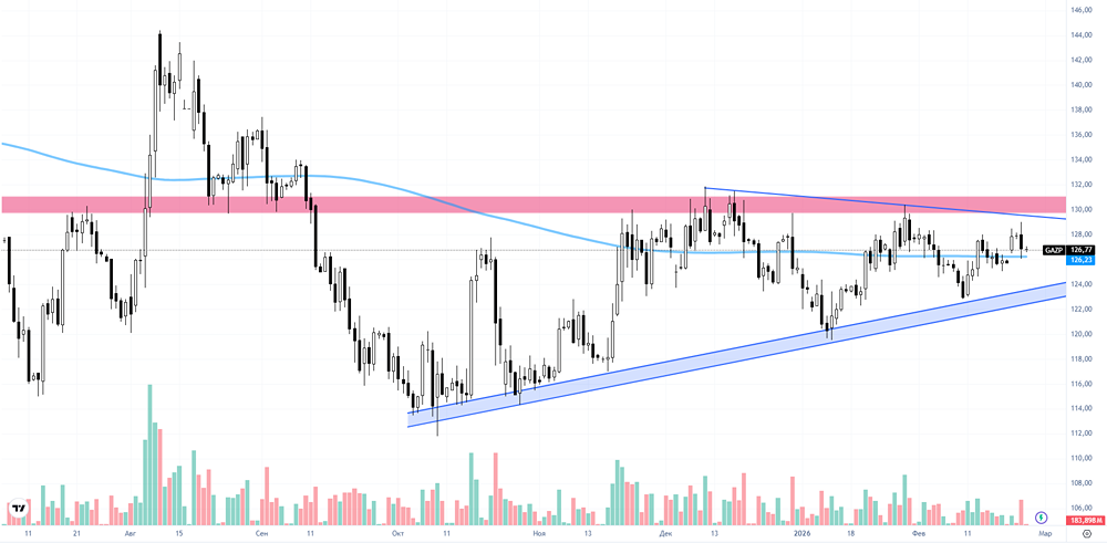 Акции Газпрома не могут пробить 130 руб. уже три месяца: станет ли очередное касание сопротивления сигналом к пробою?